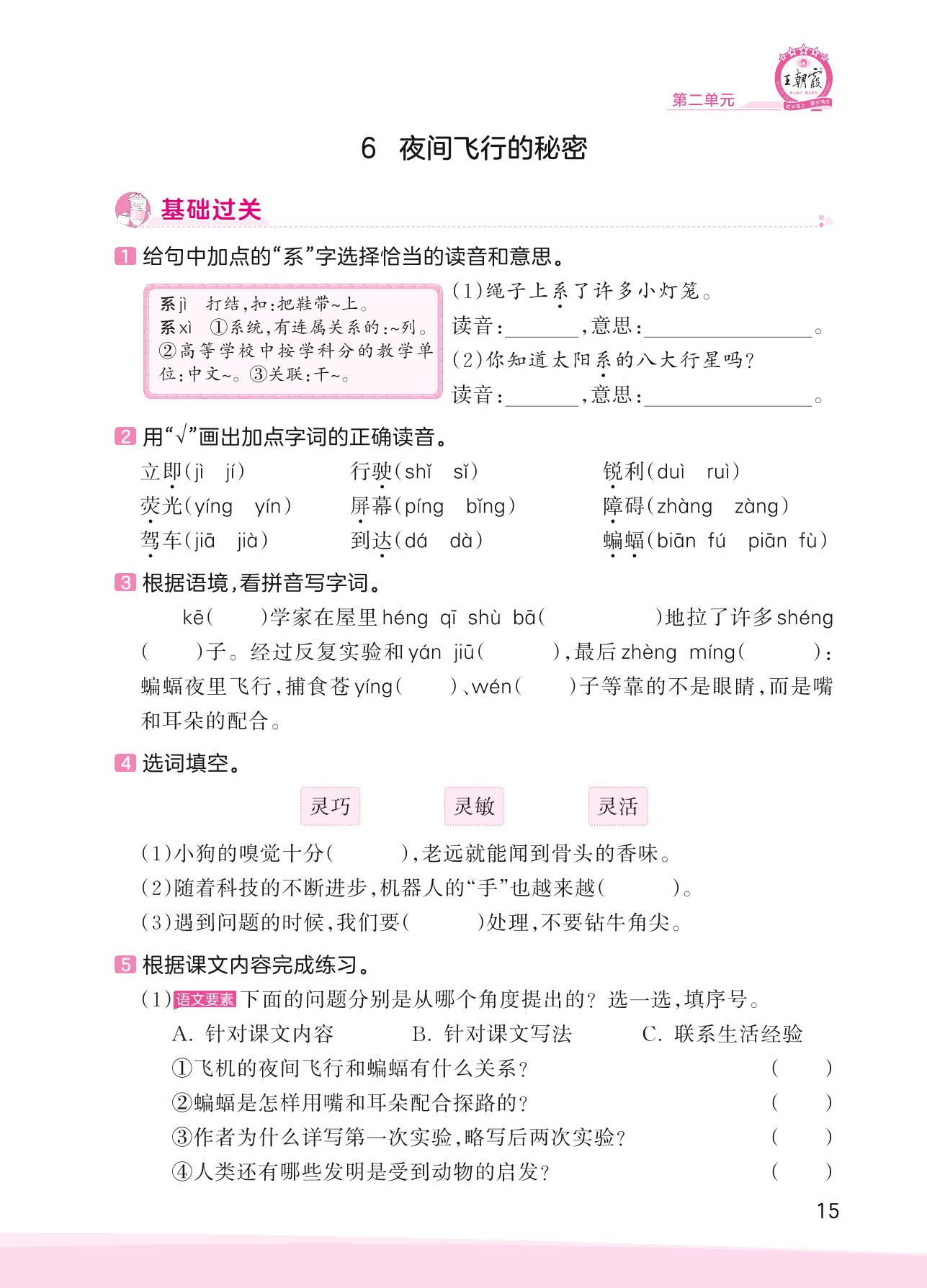 2023上册四年级语文人教版 第二单元 提问——6 夜间飞行的秘密