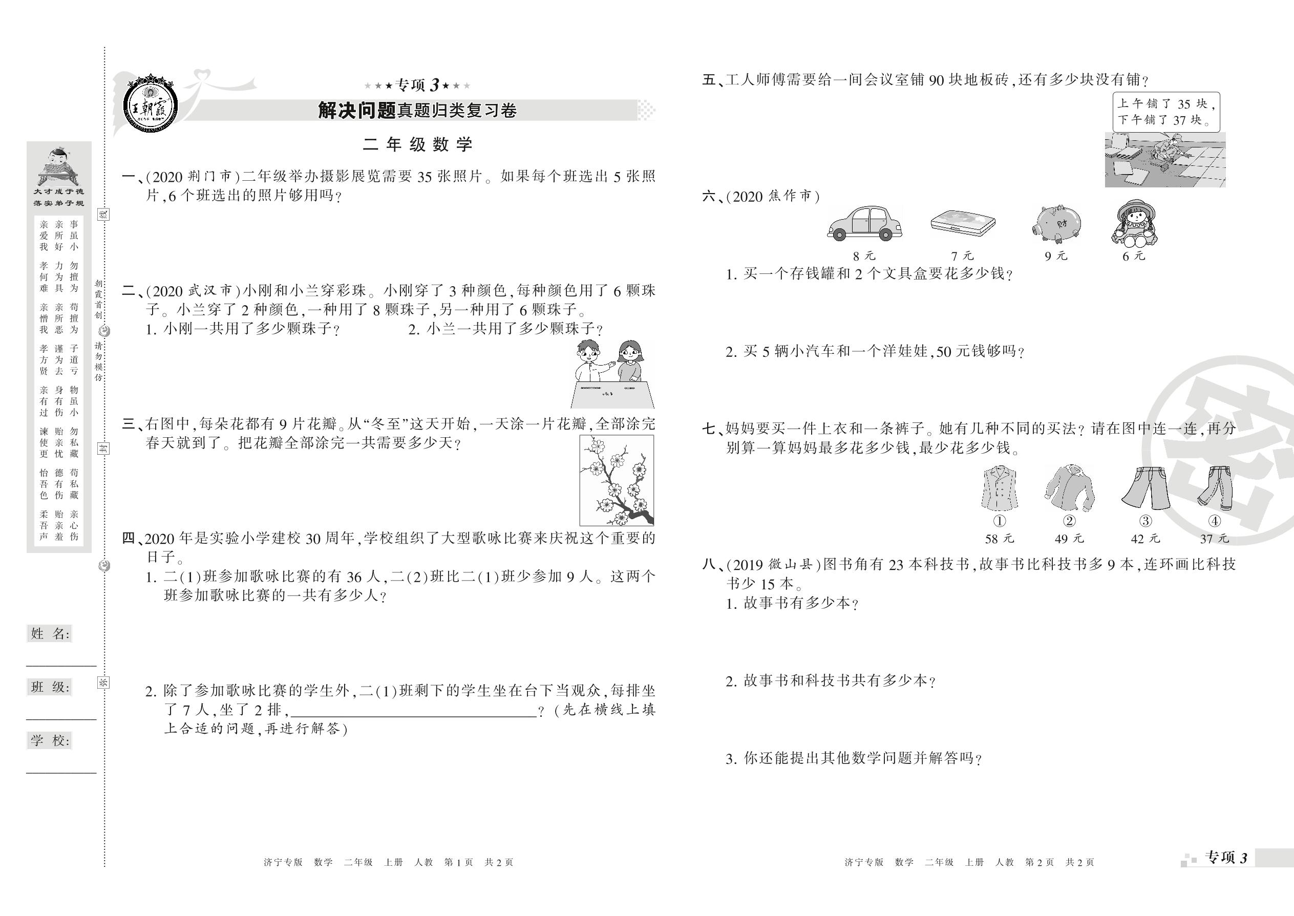王朝霞期末专项卷——解决问题真题归类复习、新颖题速递:生活与数学二年级上册数学(人教版)_R21080385111【0】