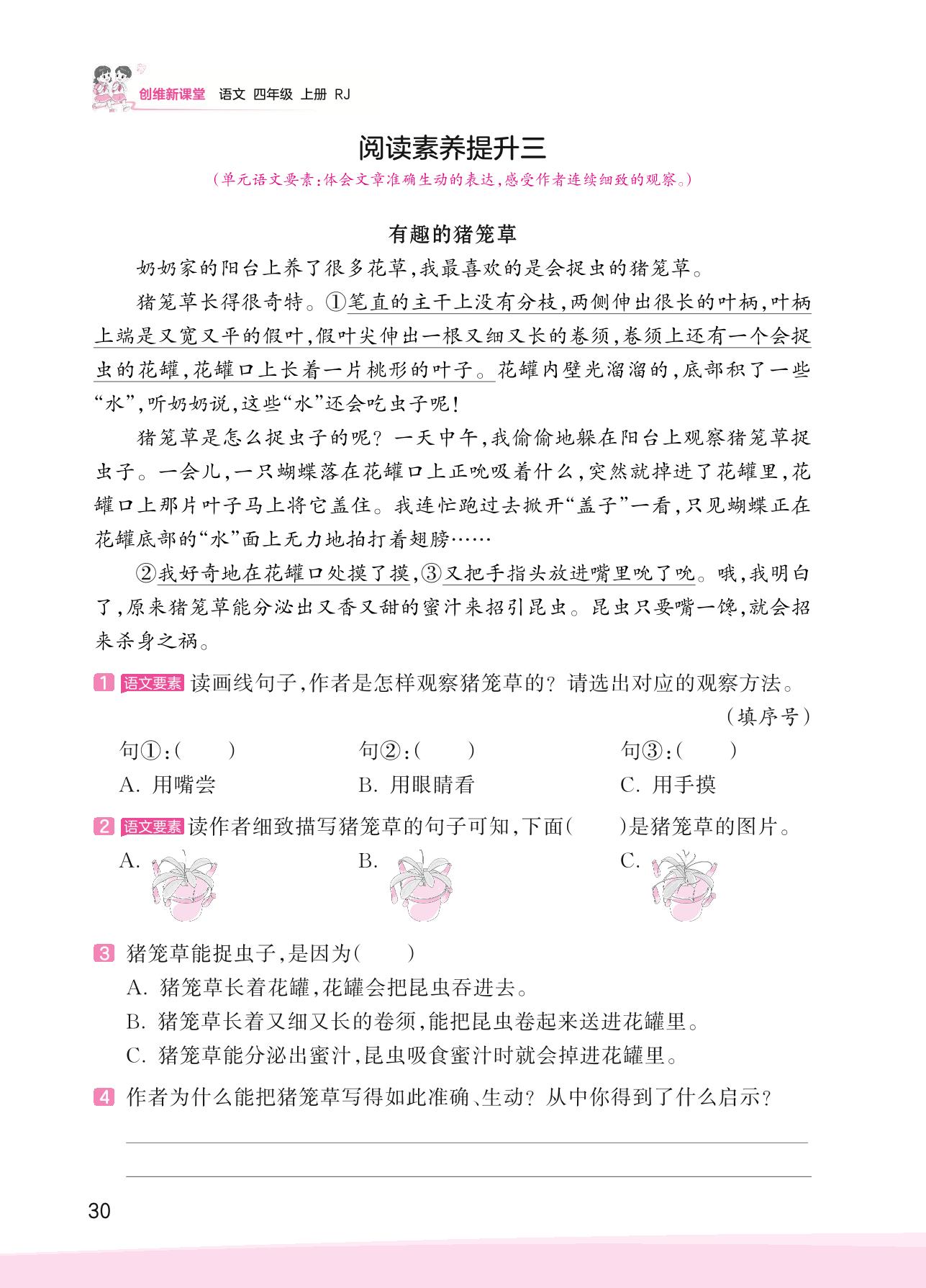 2023上册四年级语文人教版 第三单元 连续观察——阅读素养提升三
