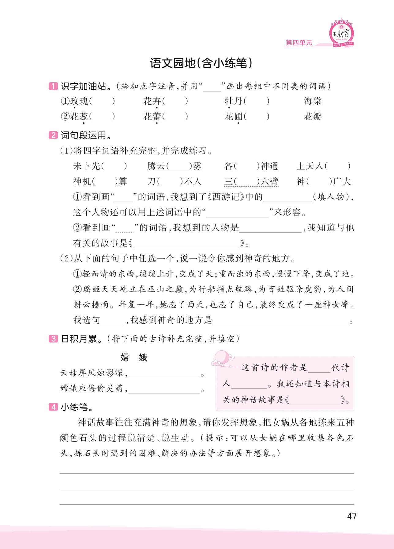 2023上册四年级语文人教版 第四单元 神话故事——语文园地[含小练笔]