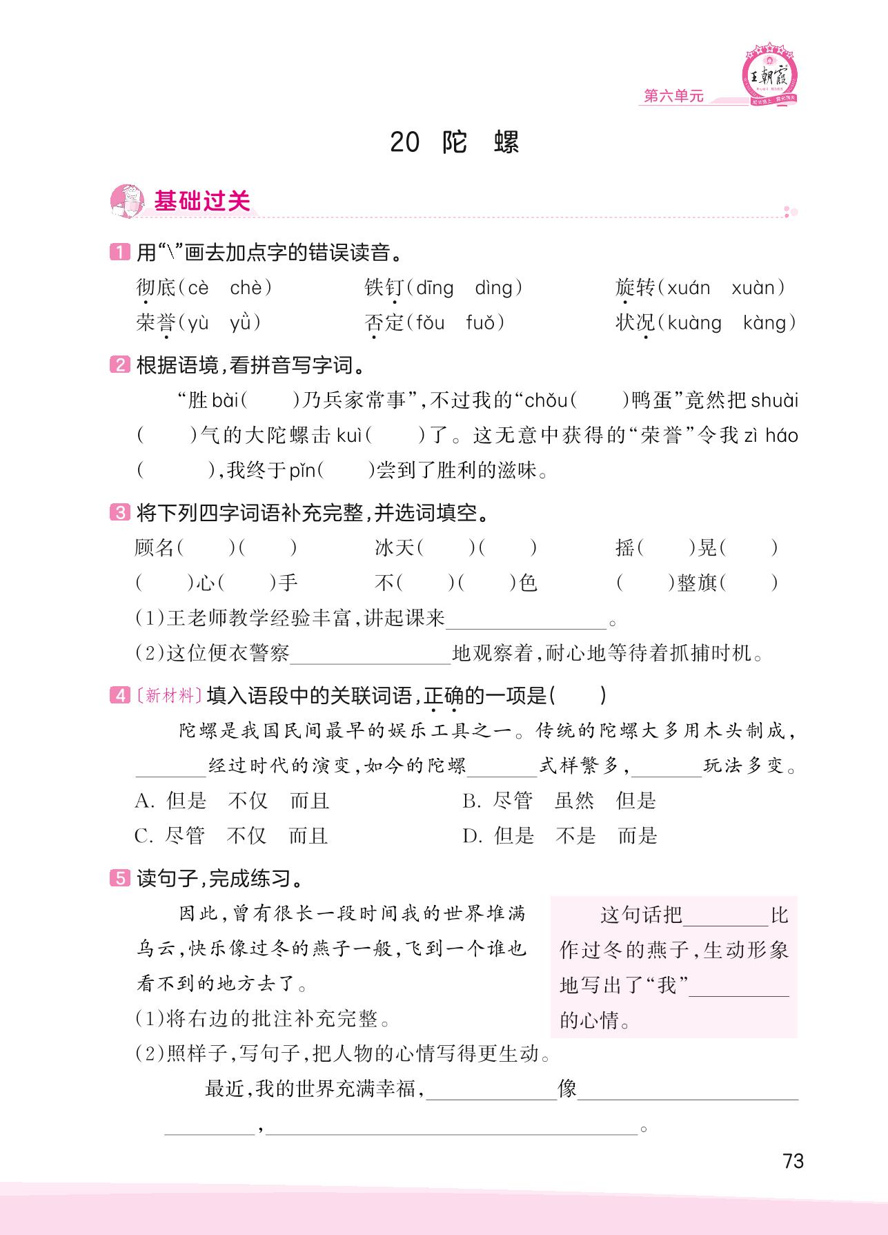 2023上册四年级语文人教版 第六单元 成长故事——20 陀螺