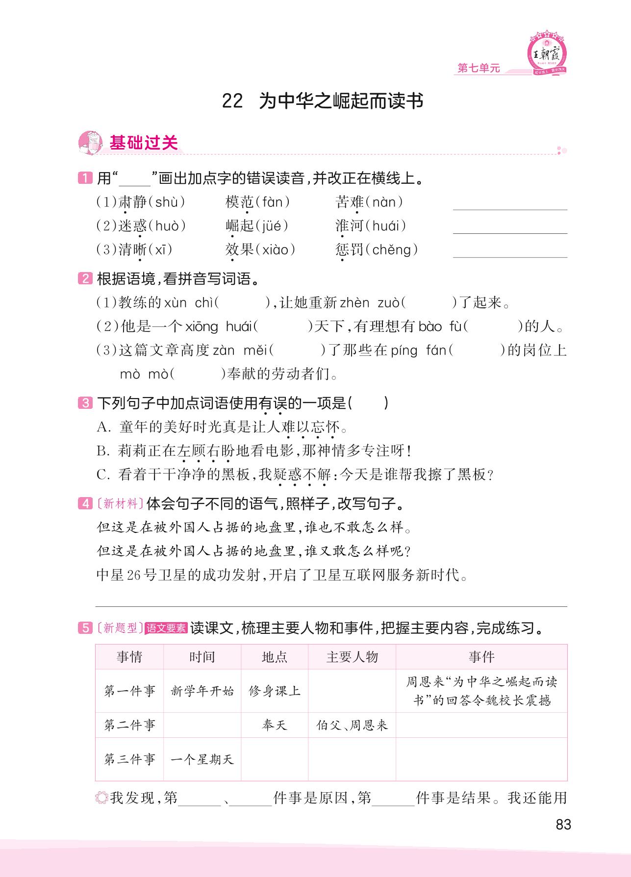 2023上册四年级语文人教版 第七单元 家国情怀——22 为中华之崛起而读书
