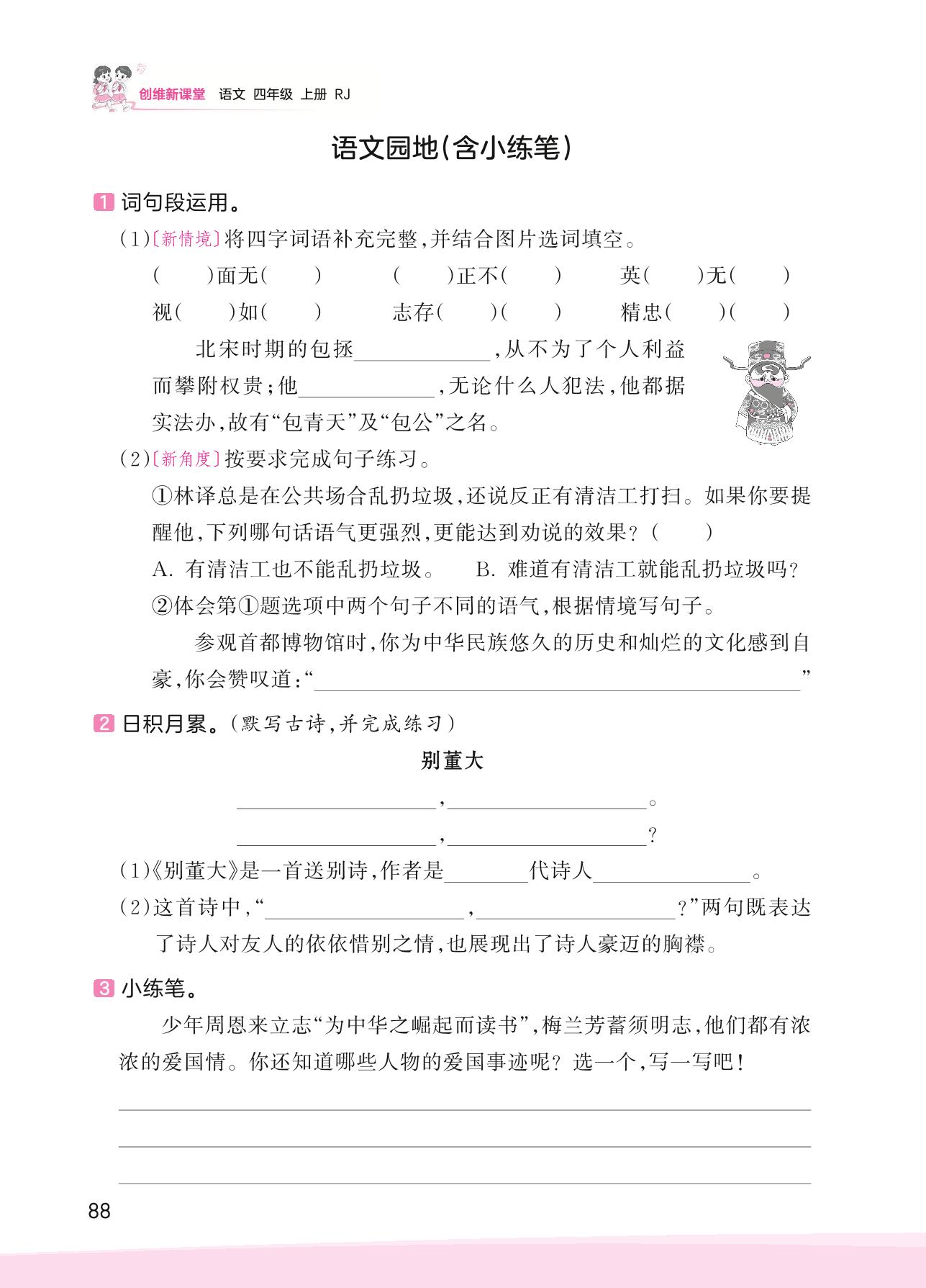 2023上册四年级语文人教版 第七单元 家国情怀——语文园地[含小练笔]