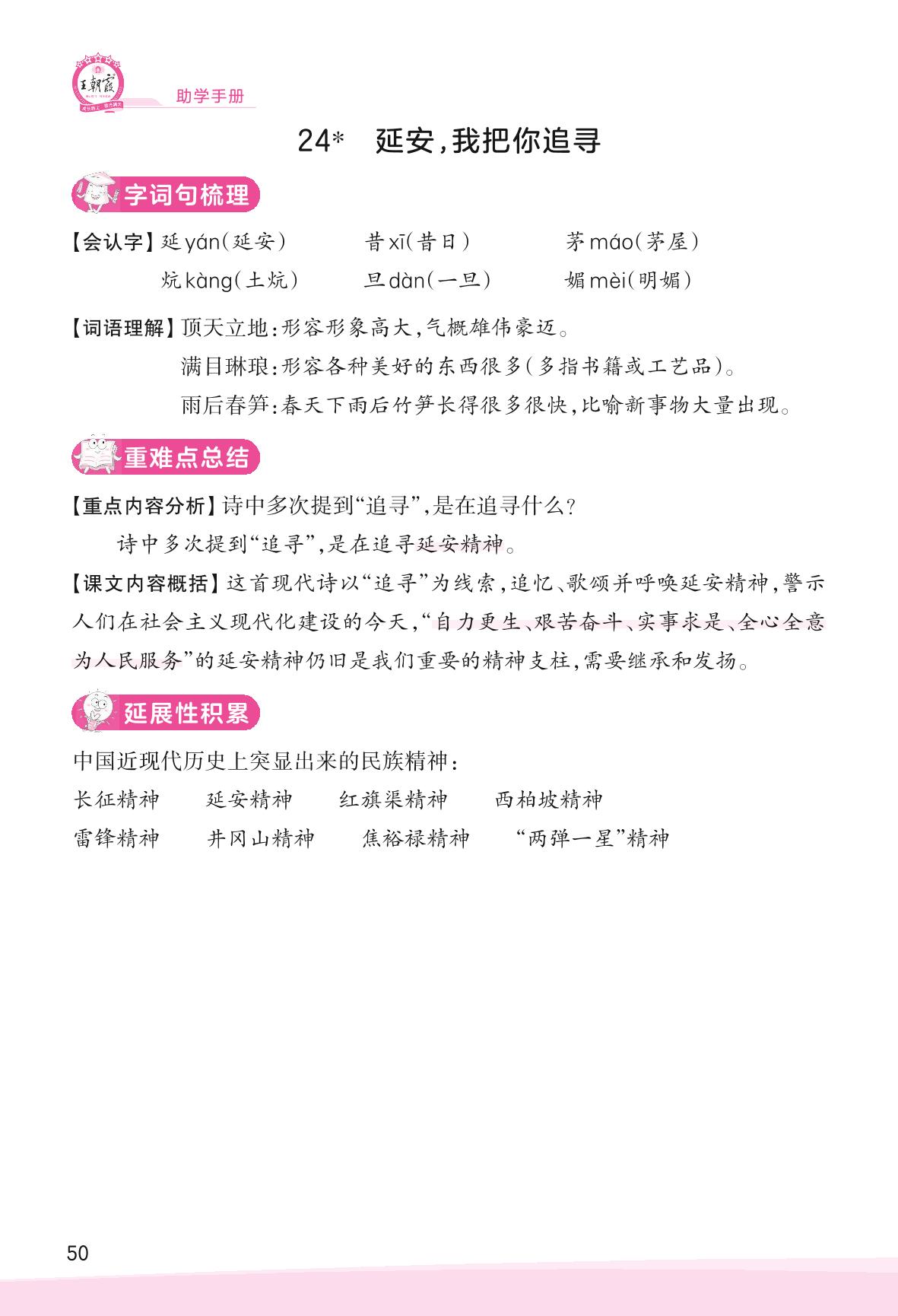 2023上册四年级语文人教版 助学手册 第七单元——24 延安,我把你追寻