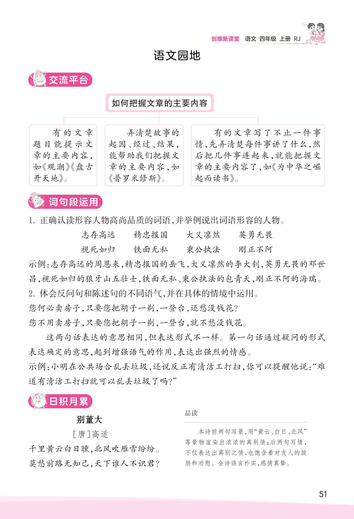 2023上册四年级语文人教版 助学手册 第七单元——语文园地