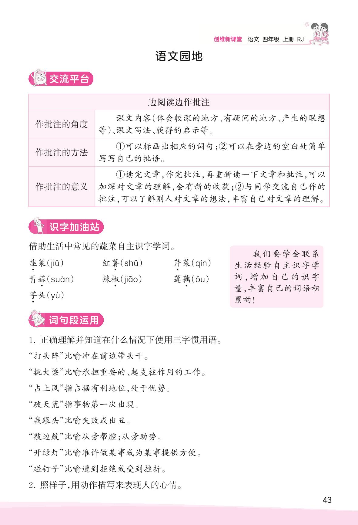 2023上册四年级语文人教版 助学手册 第六单元——语文园地