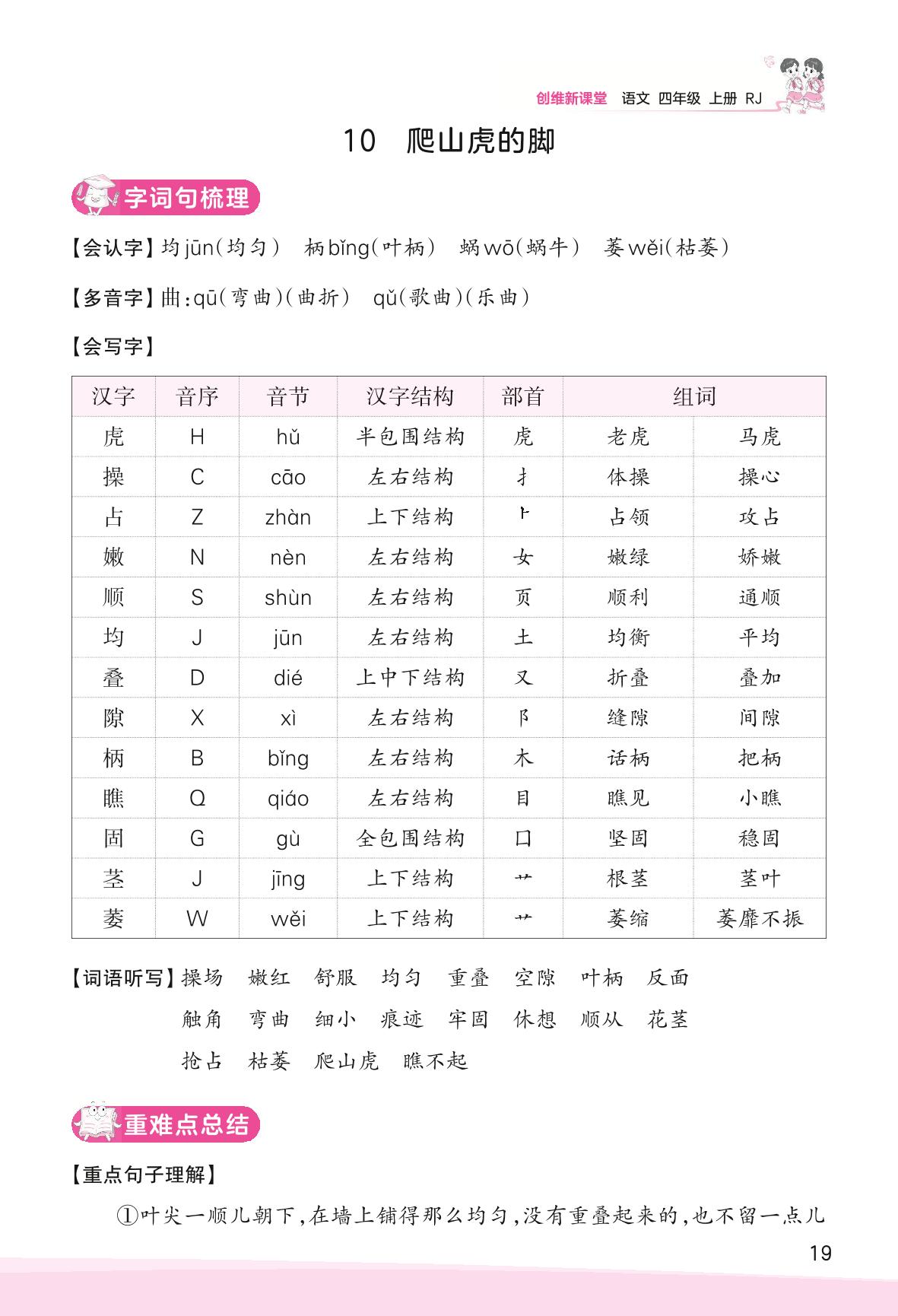 2023上册四年级语文人教版 助学手册 第三单元——10 爬山虎的脚