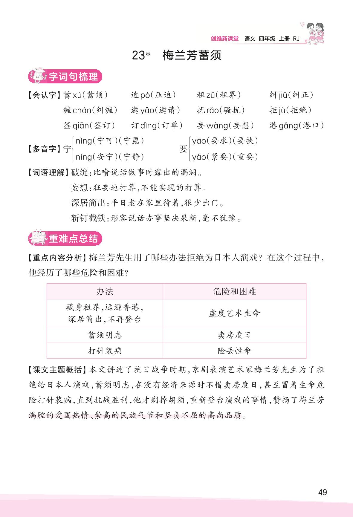 2023上册四年级语文人教版 助学手册 第七单元——23 梅兰芳蓄须