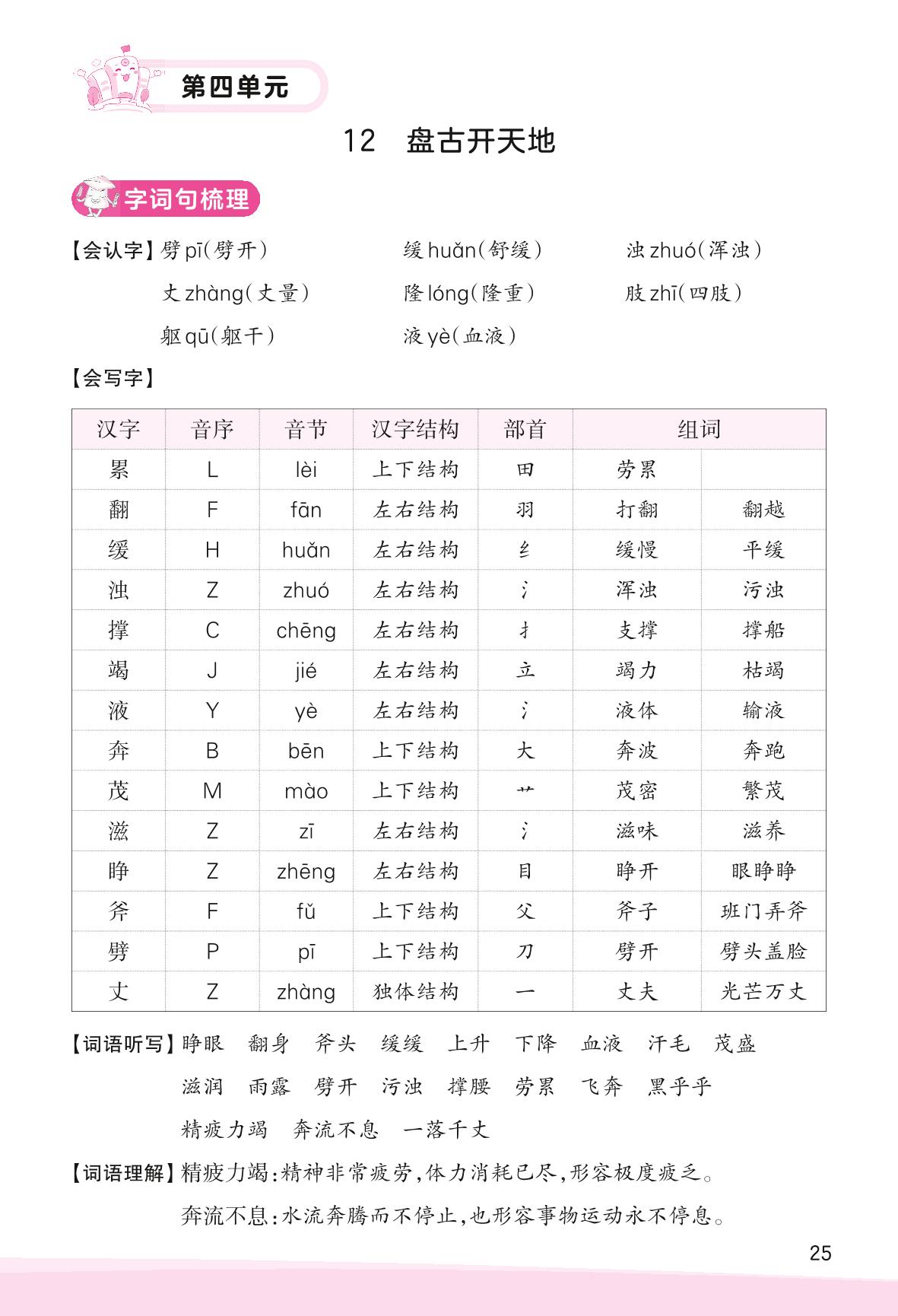 2023上册四年级语文人教版 助学手册 第四单元——12 盘古开天地