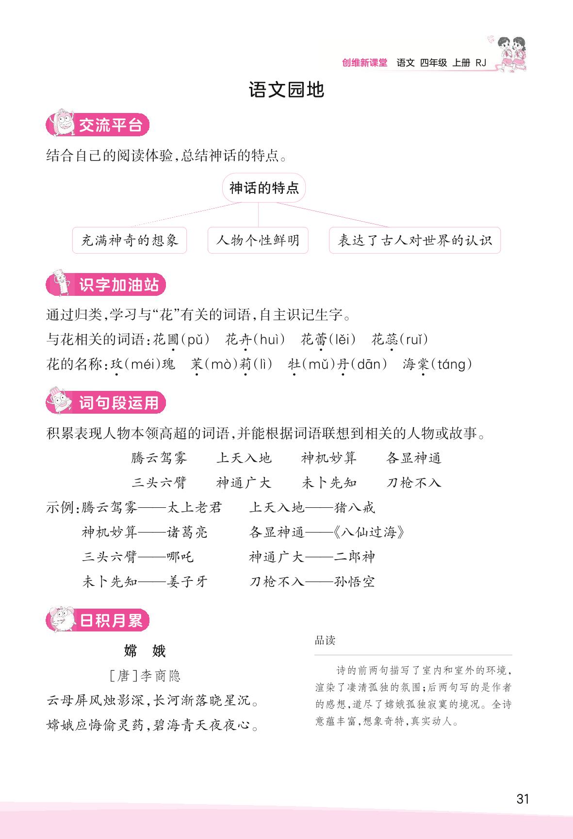 2023上册四年级语文人教版 助学手册 第四单元——语文园地