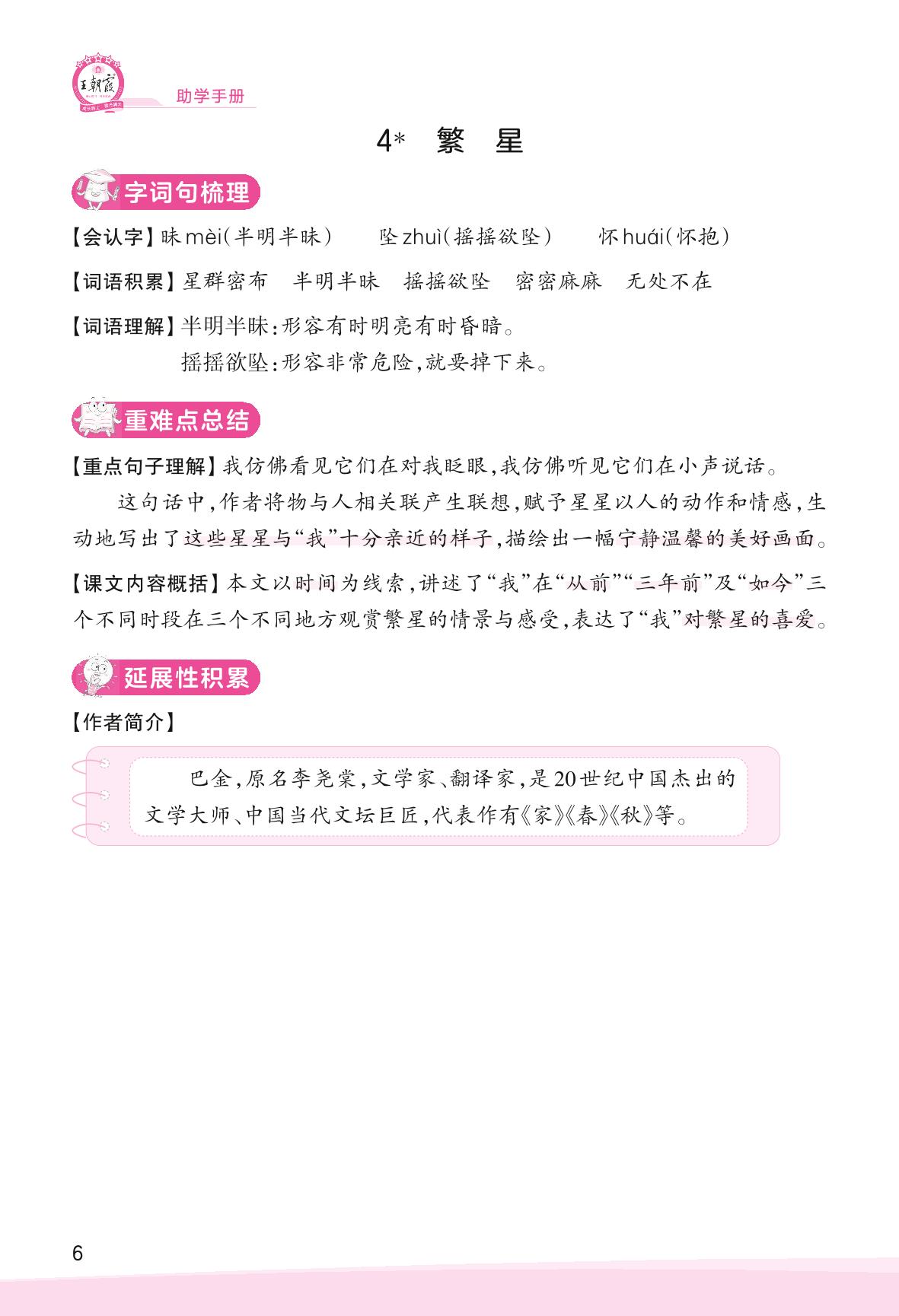 2023上册四年级语文人教版 助学手册 第一单元——4 繁星