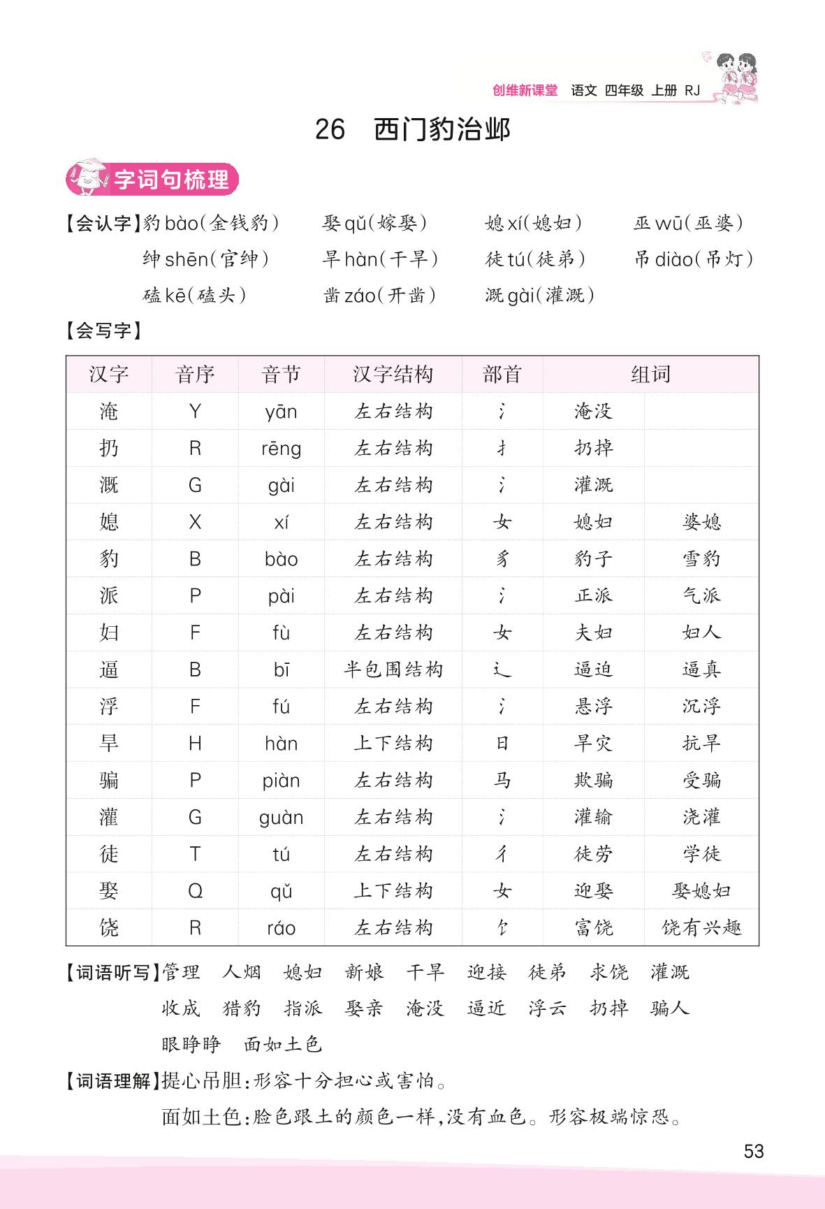2023上册四年级语文人教版 助学手册 第八单元——26 西门豹治邺