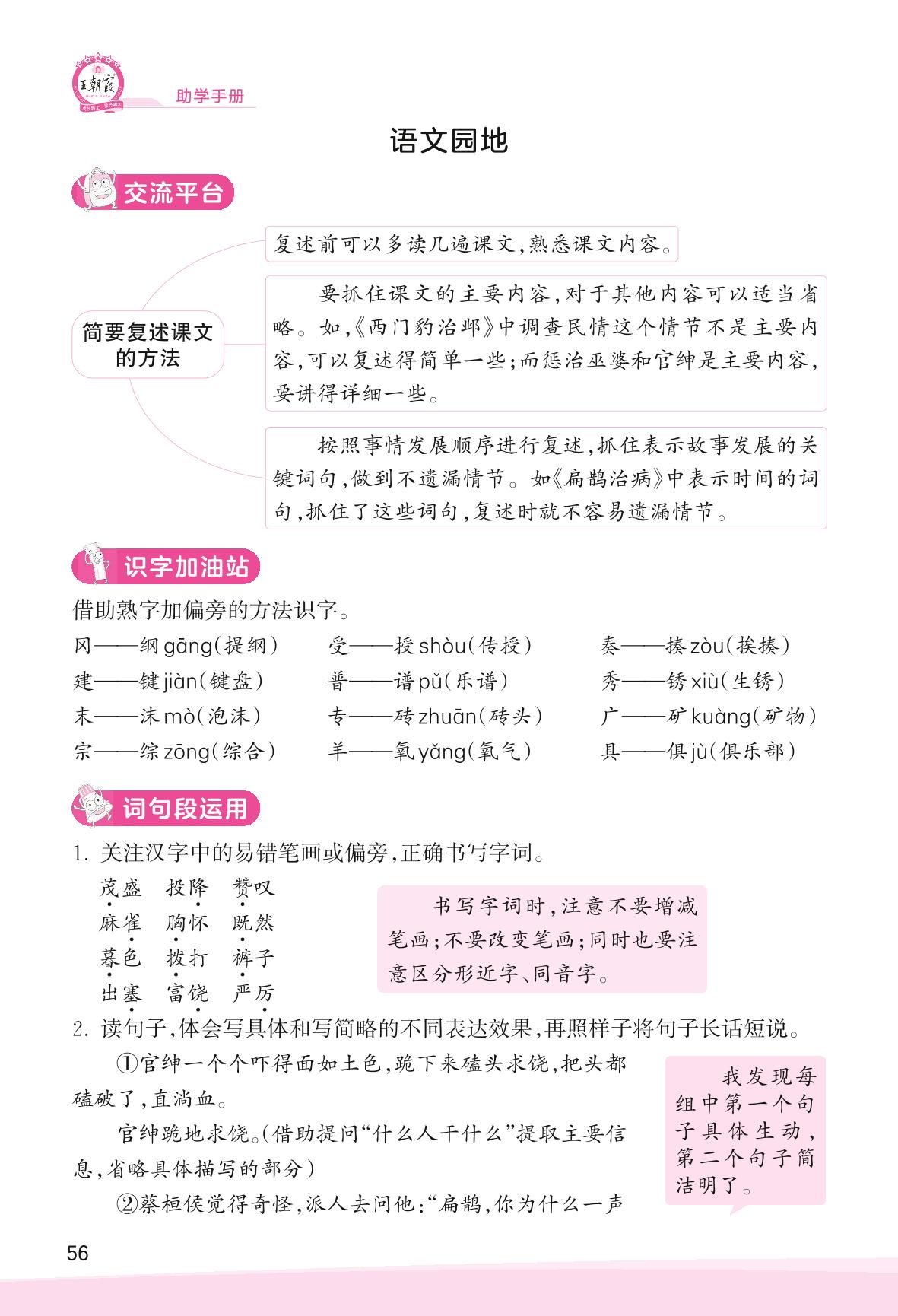 2023上册四年级语文人教版 助学手册 第八单元——语文园地