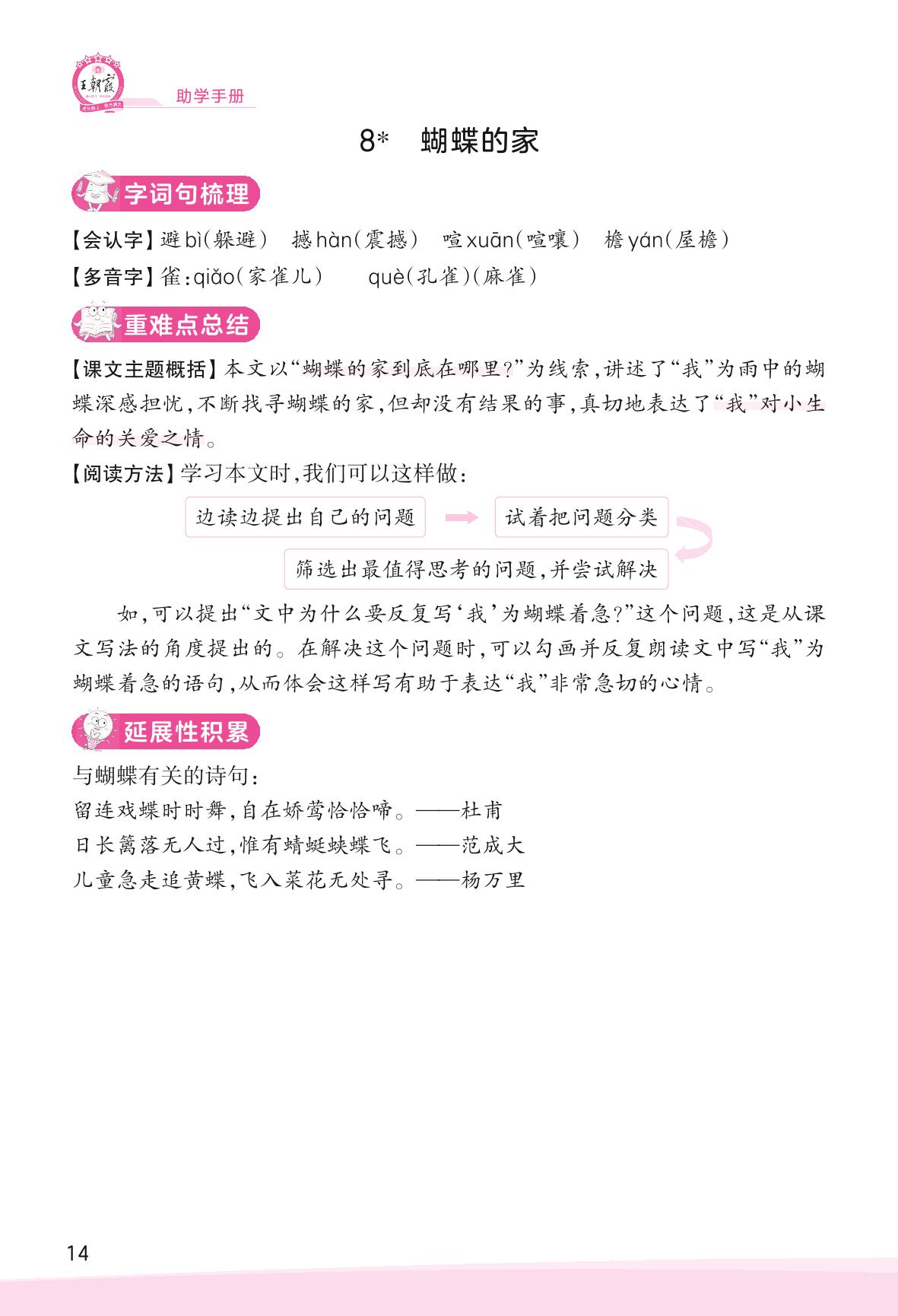2023上册四年级语文人教版 助学手册 第二单元——8 蝴蝶的家