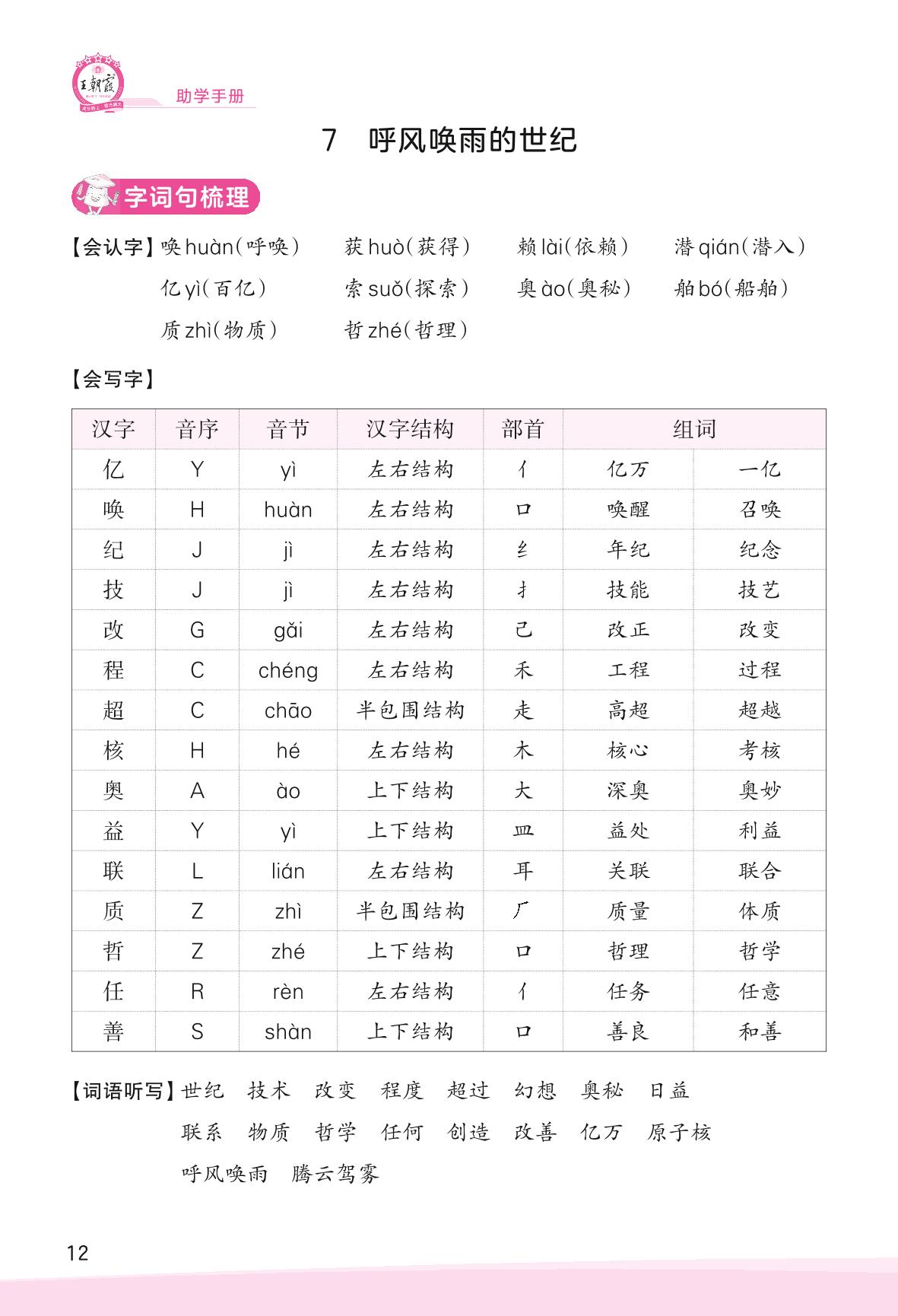 2023上册四年级语文人教版 助学手册 第二单元——7 呼风唤雨的世纪