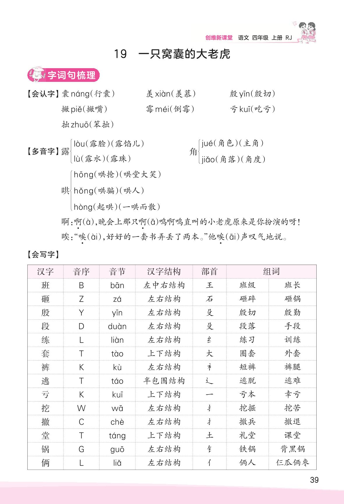 2023上册四年级语文人教版 助学手册 第六单元——19 一只窝囊的大老虎