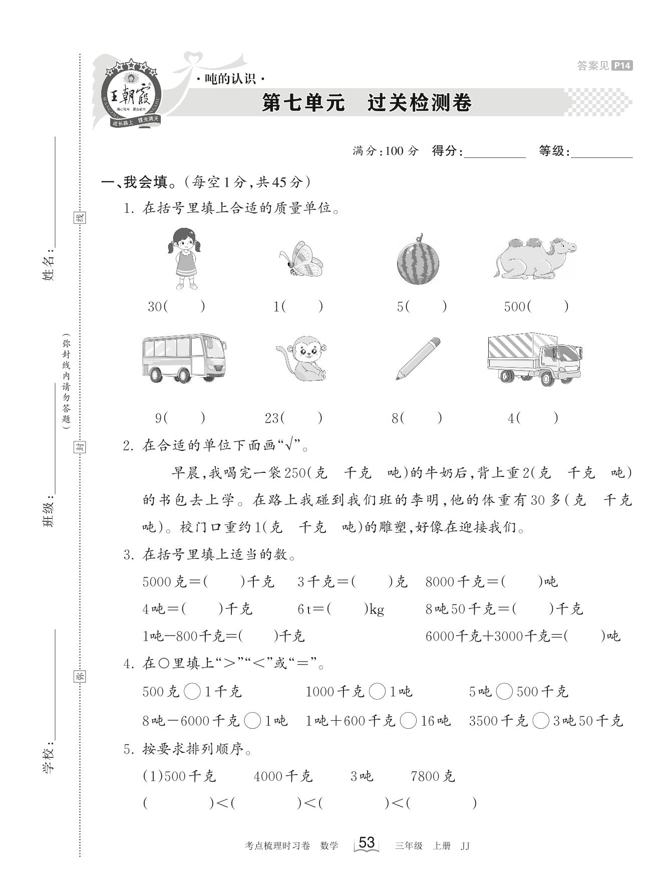 2023上册三年级数学冀教版 第七单元 过关检测卷