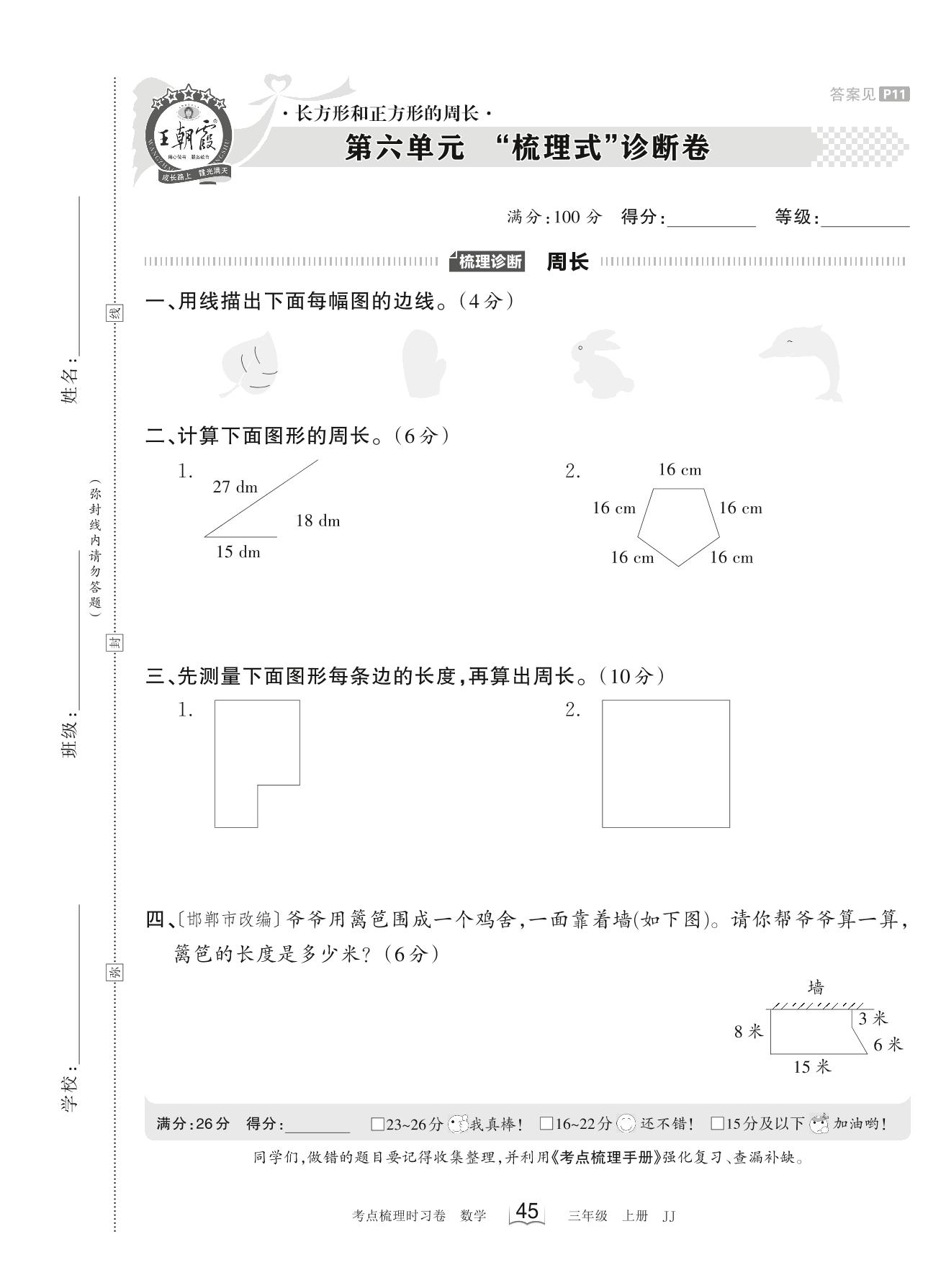 2023上册三年级数学冀教版 第六单元 “梳理式”诊断卷