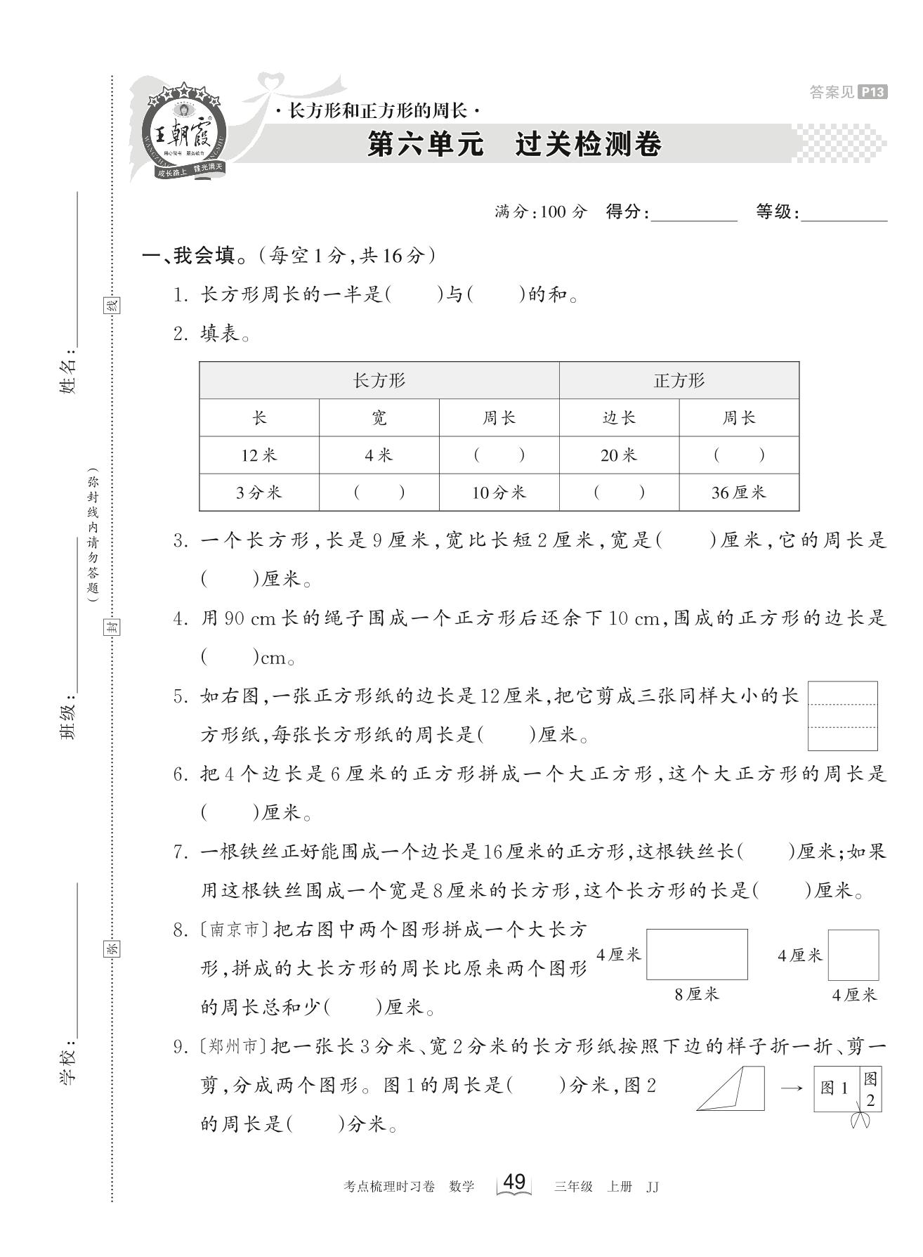 2023上册三年级数学冀教版 第六单元 过关检测卷