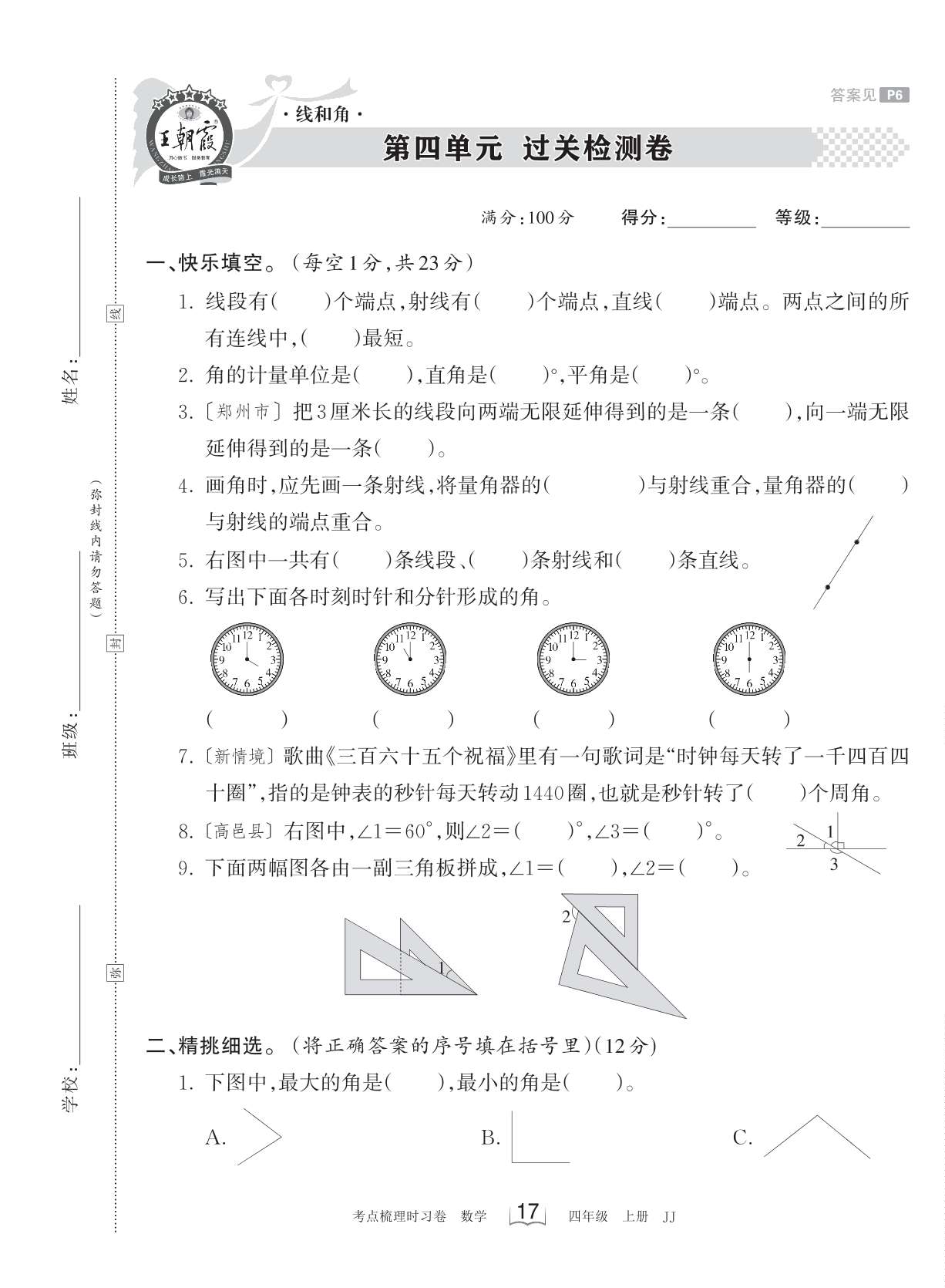 2023上册四年级数学冀教版 第四单元 过关检测卷