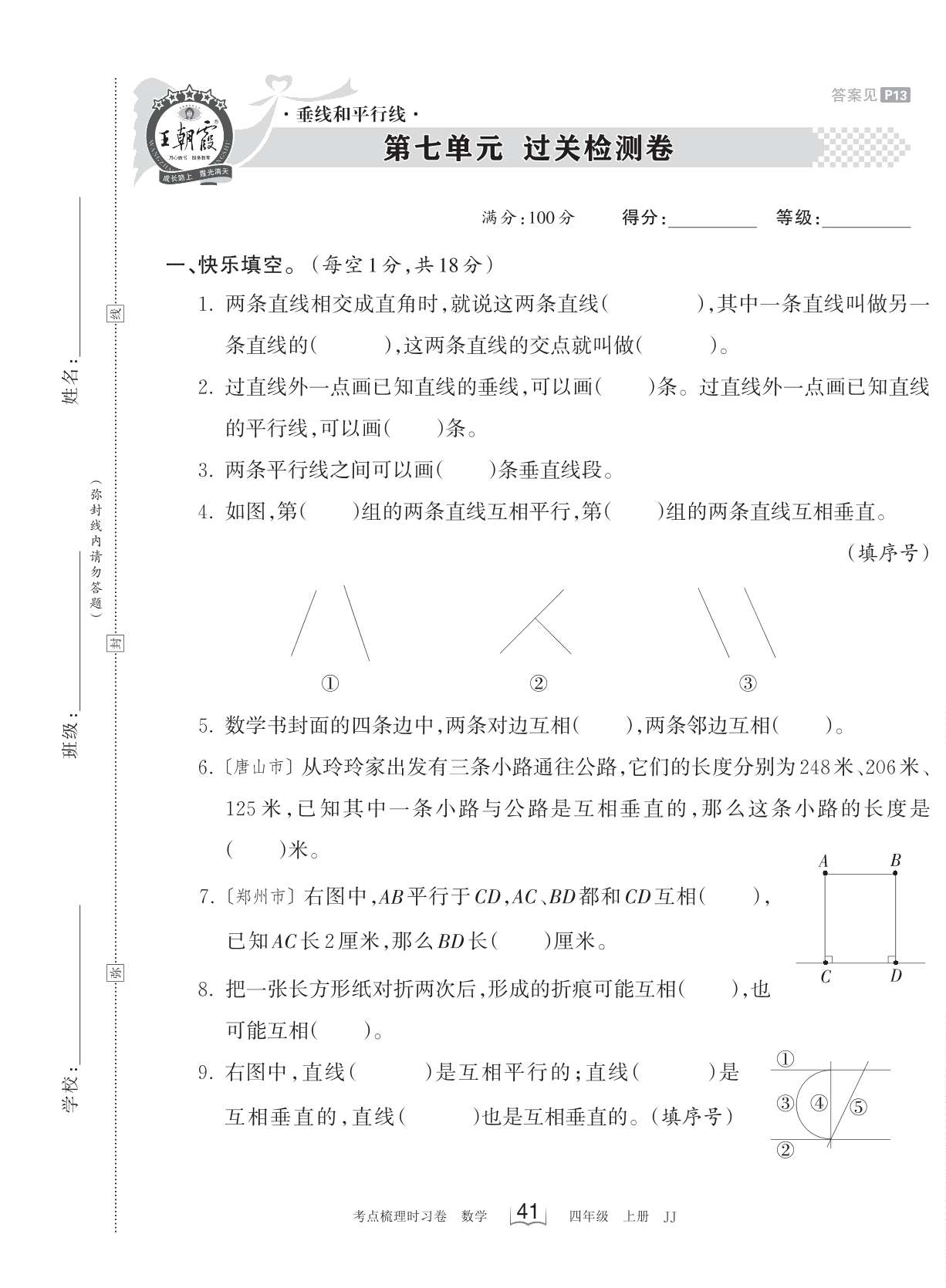 四年级数学冀教版上册单元卷