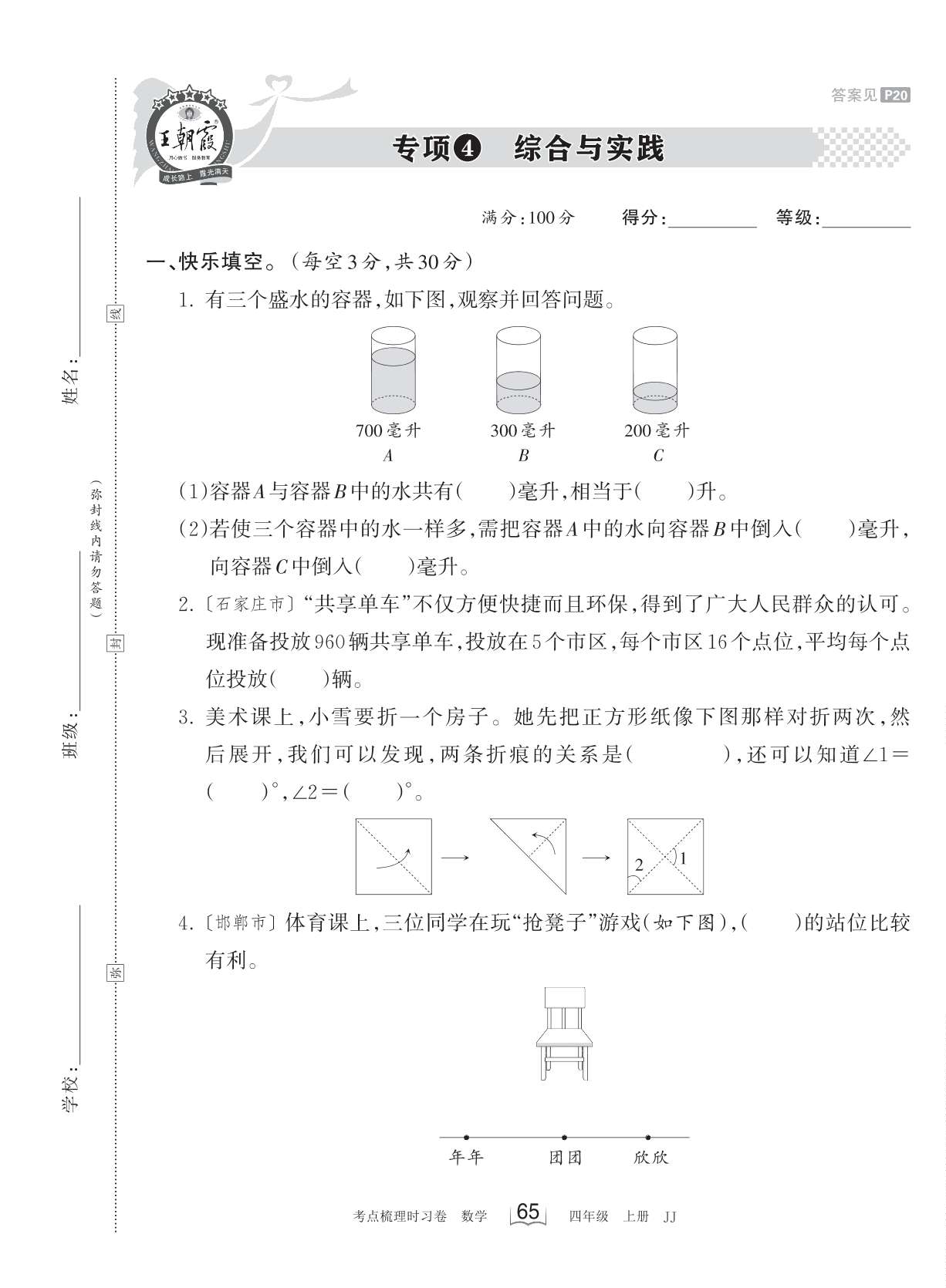 2023上册四年级数学冀教版 专项4 综合与实践