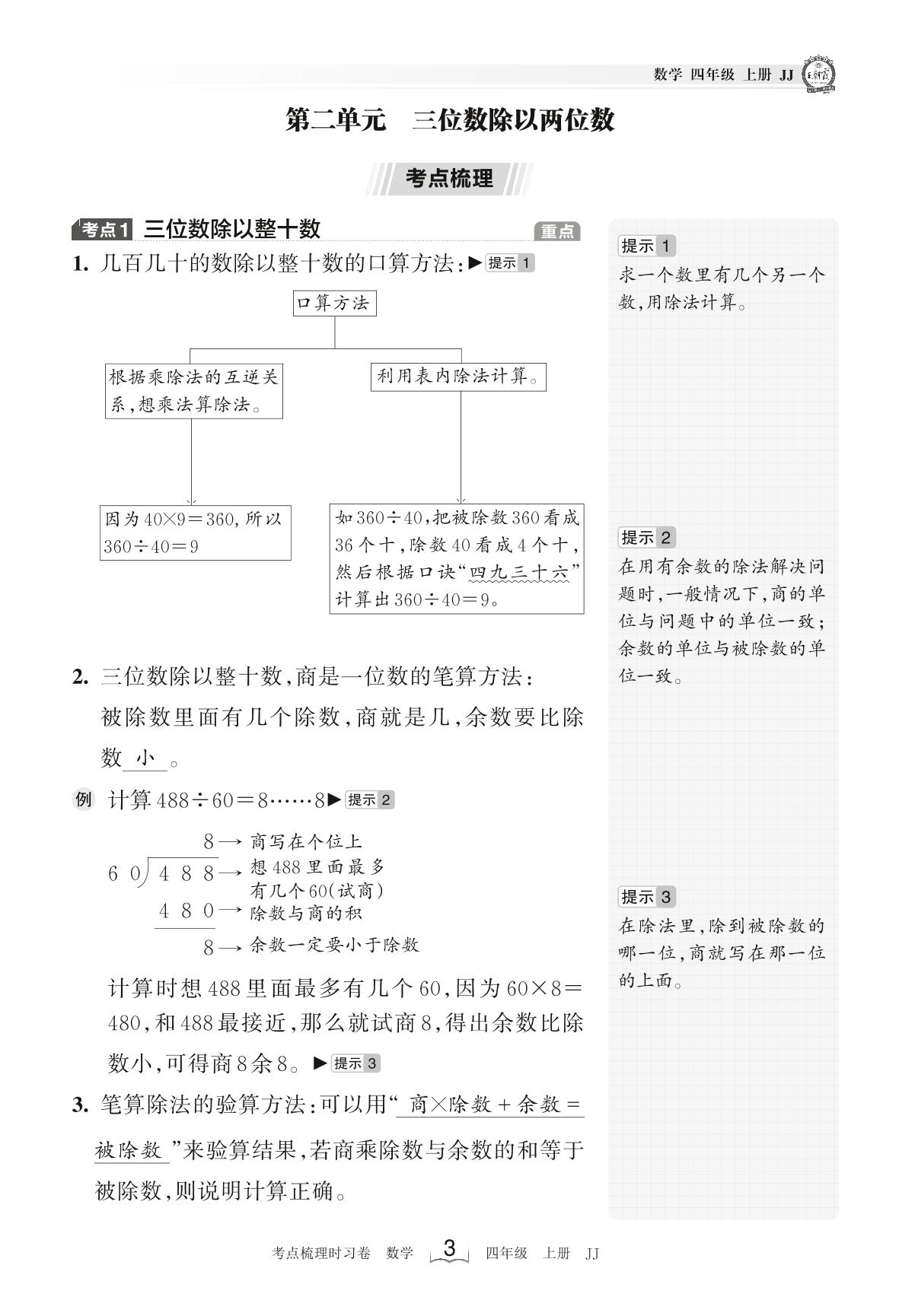 2023上册四年级数学冀教版 考点梳理手册——第二单元 三位数除以两位数