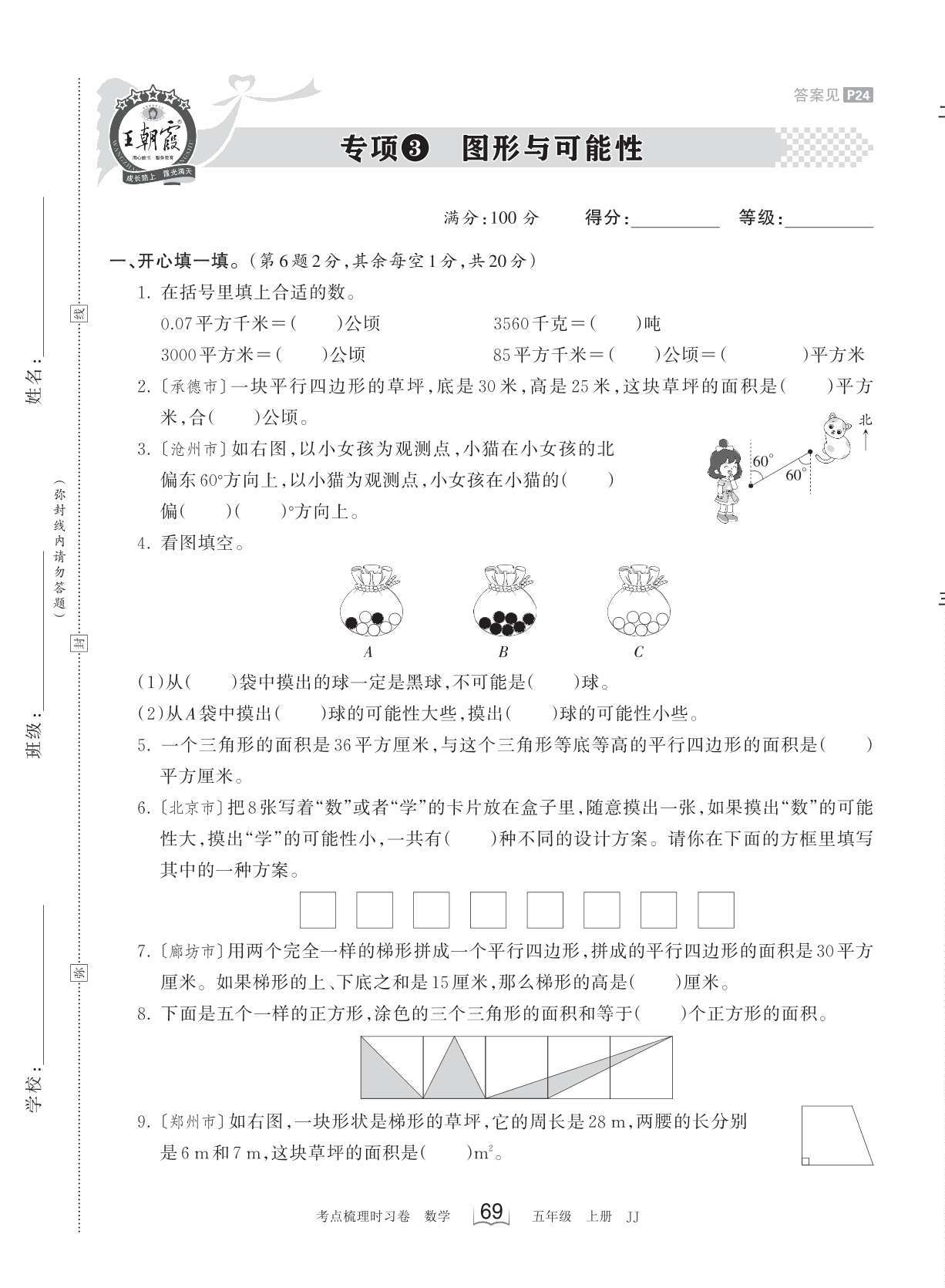 2023上册五年级数学冀教版 专项3 图形与可能性