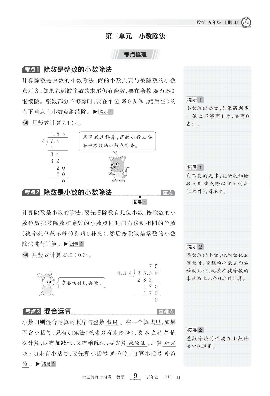 2023上册五年级数学冀教版 考点梳理手册——第三单元 小数除法