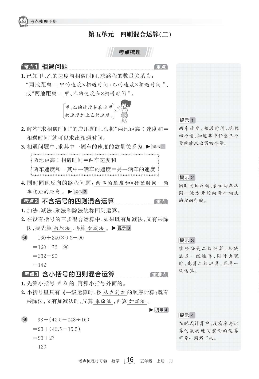 2023上册五年级数学冀教版 考点梳理手册——第五单元 四则混合运算(二)