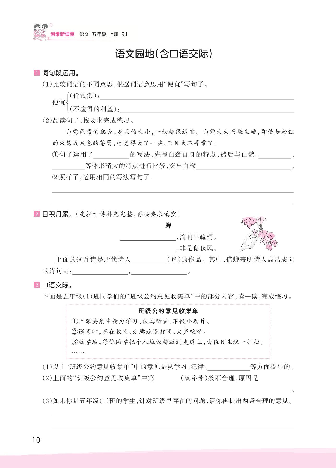 2023上册五年级语文人教版 第一单元 万物有灵——语文园地[含口语交际]