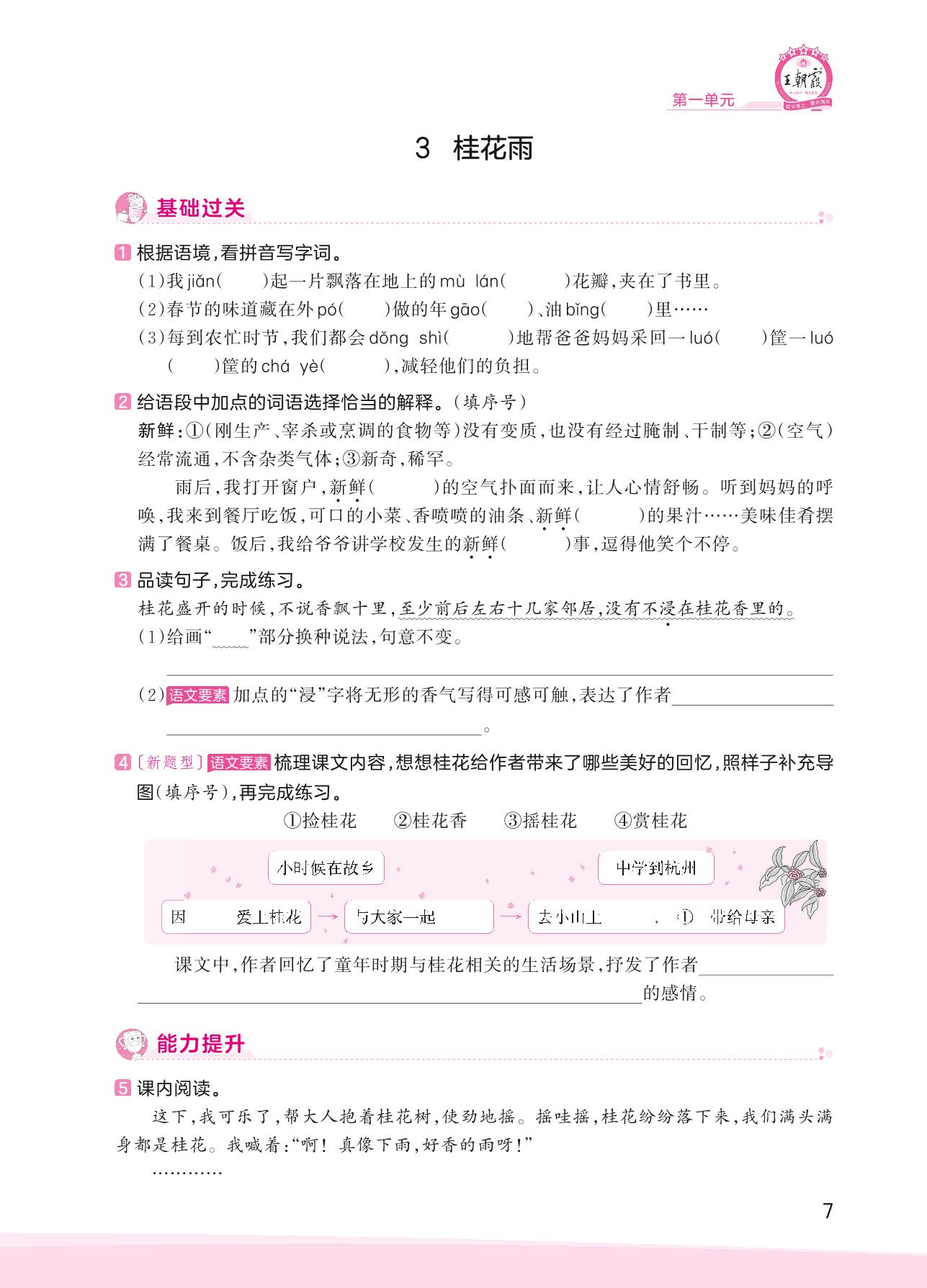 2023上册五年级语文人教版 第一单元 万物有灵——3 桂花雨