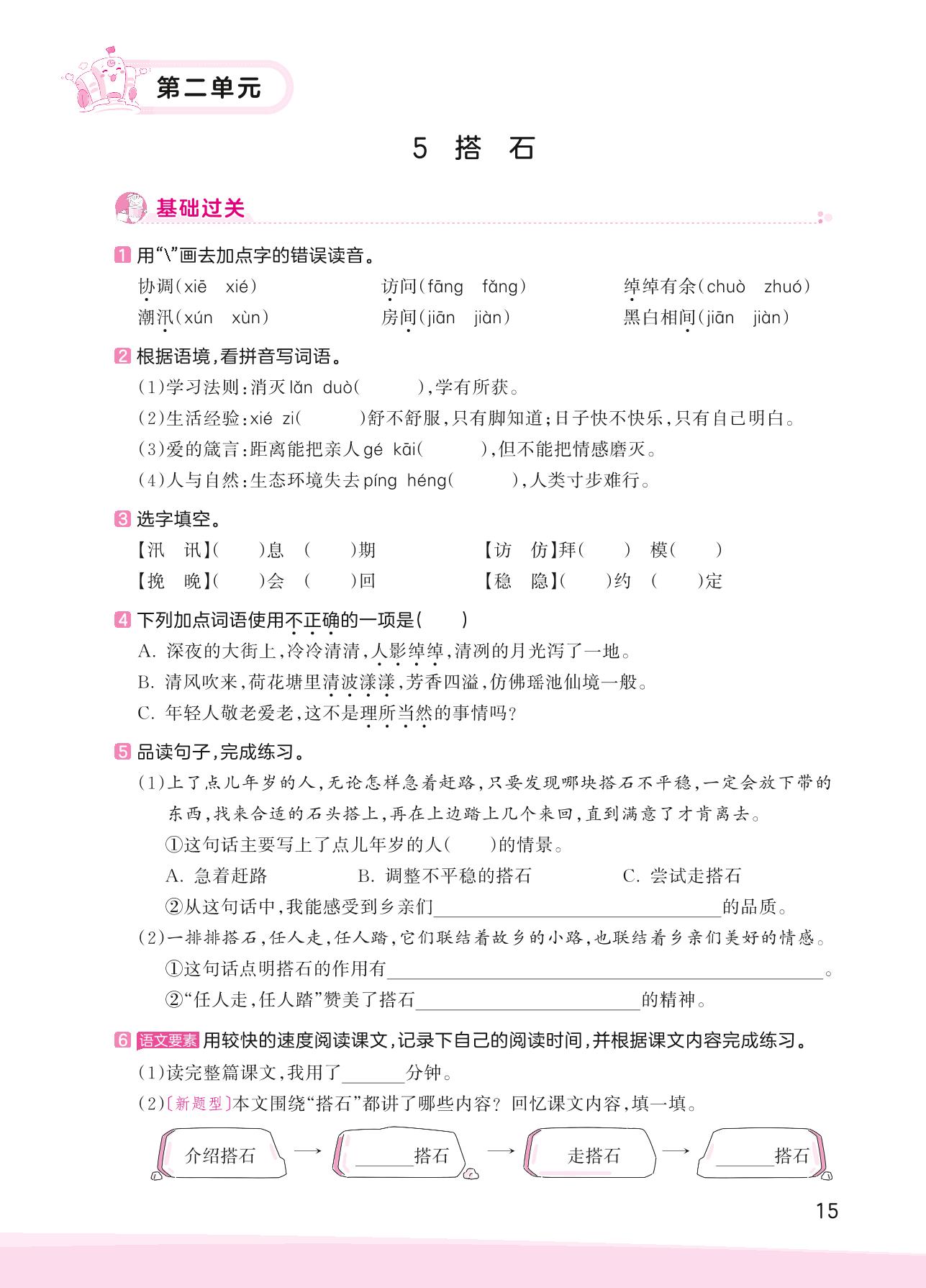 2023上册五年级语文人教版 第二单元 阅读策略——5 搭石