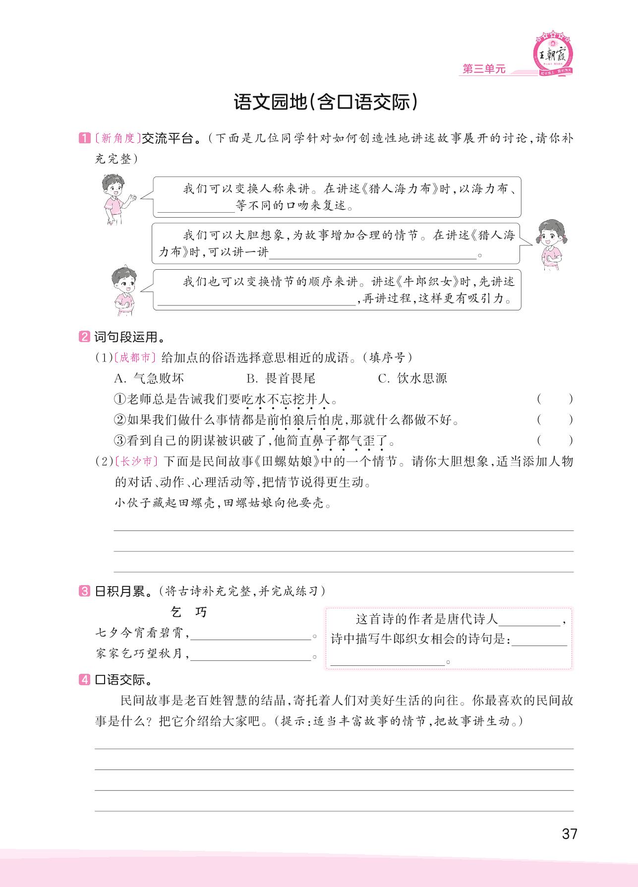 2023上册五年级语文人教版 第三单元 民间故事——语文园地[含口语交际]