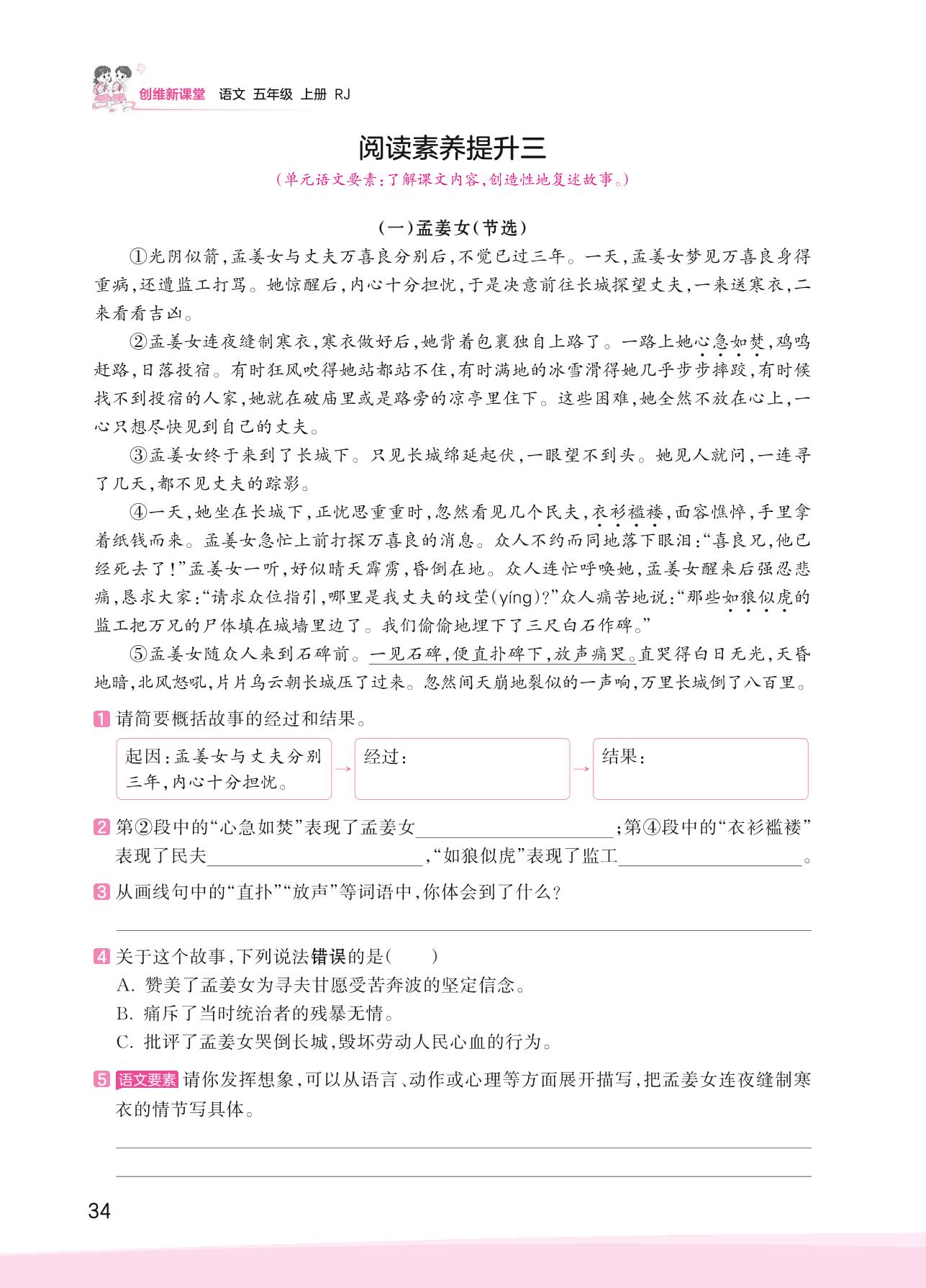 2023上册五年级语文人教版 第三单元 民间故事——阅读素养提升三