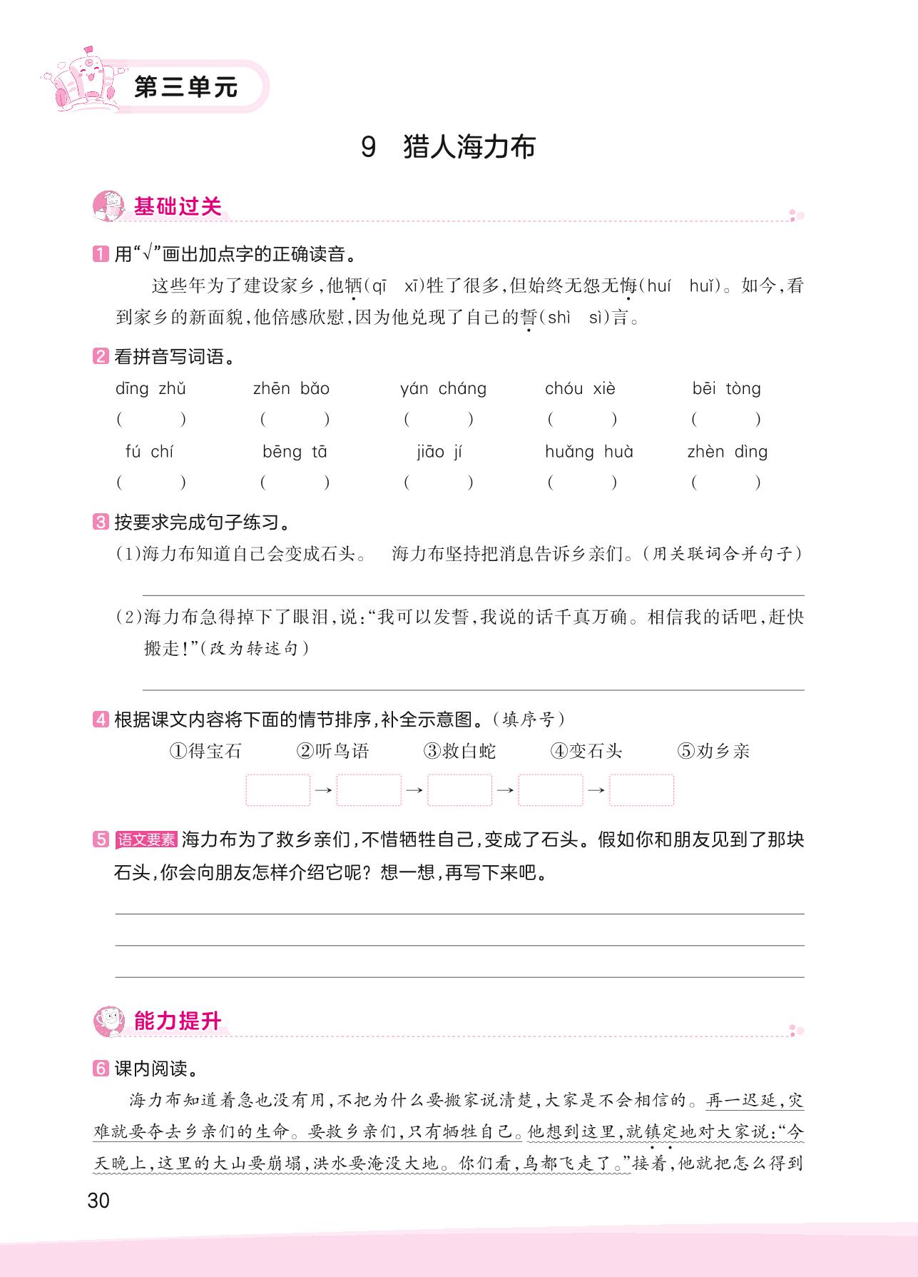 2023上册五年级语文人教版 第三单元 民间故事——9 猎人海力布