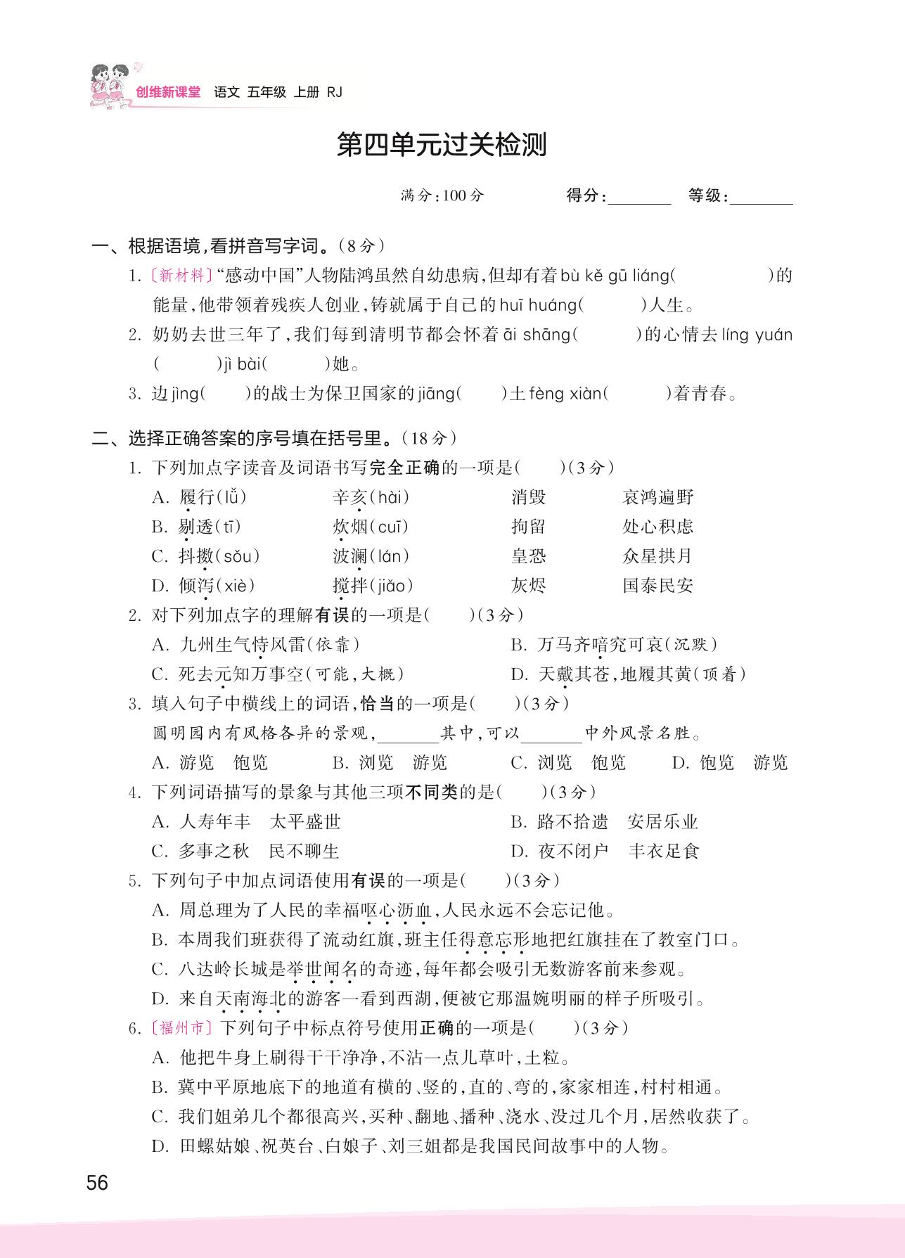 五年级语文人教版上册单元卷