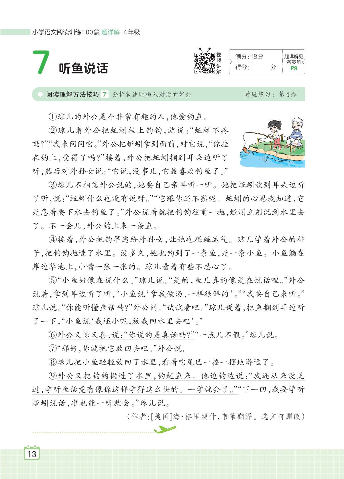 2024全一册四年级语文人教版 专题一 写人 7 听鱼说话