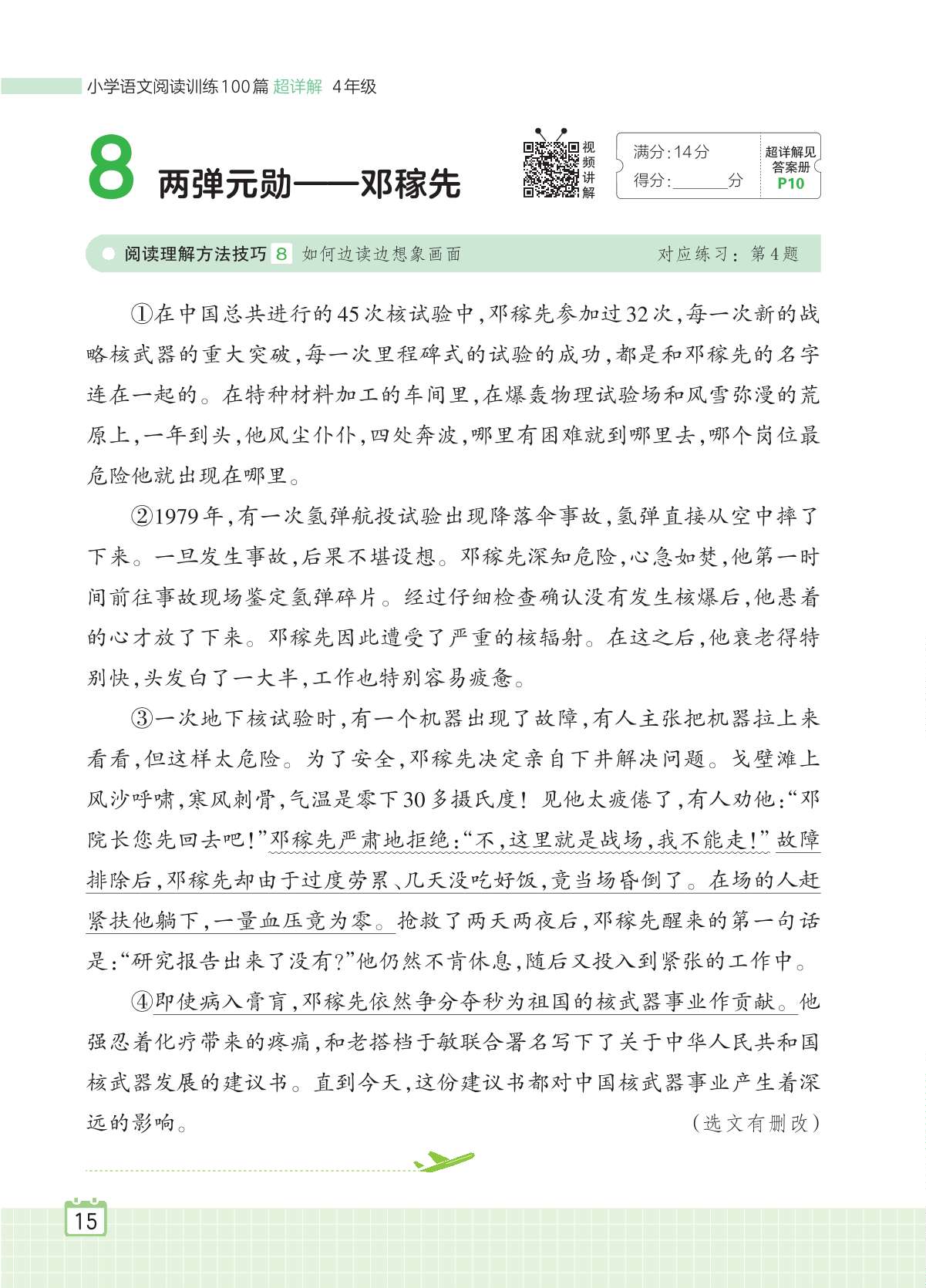 2024全一册四年级语文人教版 专题一 写人 8 两弹元勋——邓稼先