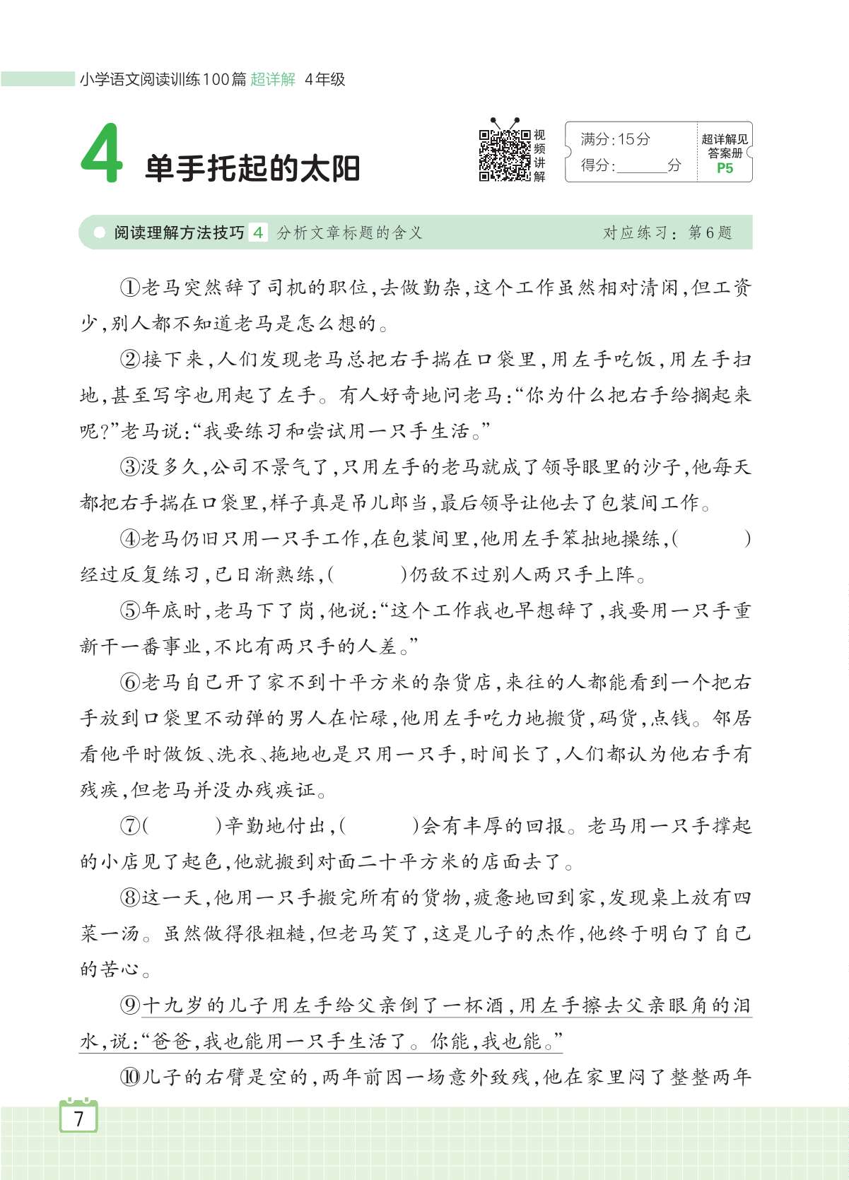 2024全一册四年级语文人教版 专题一 写人 4 单手托起的太阳