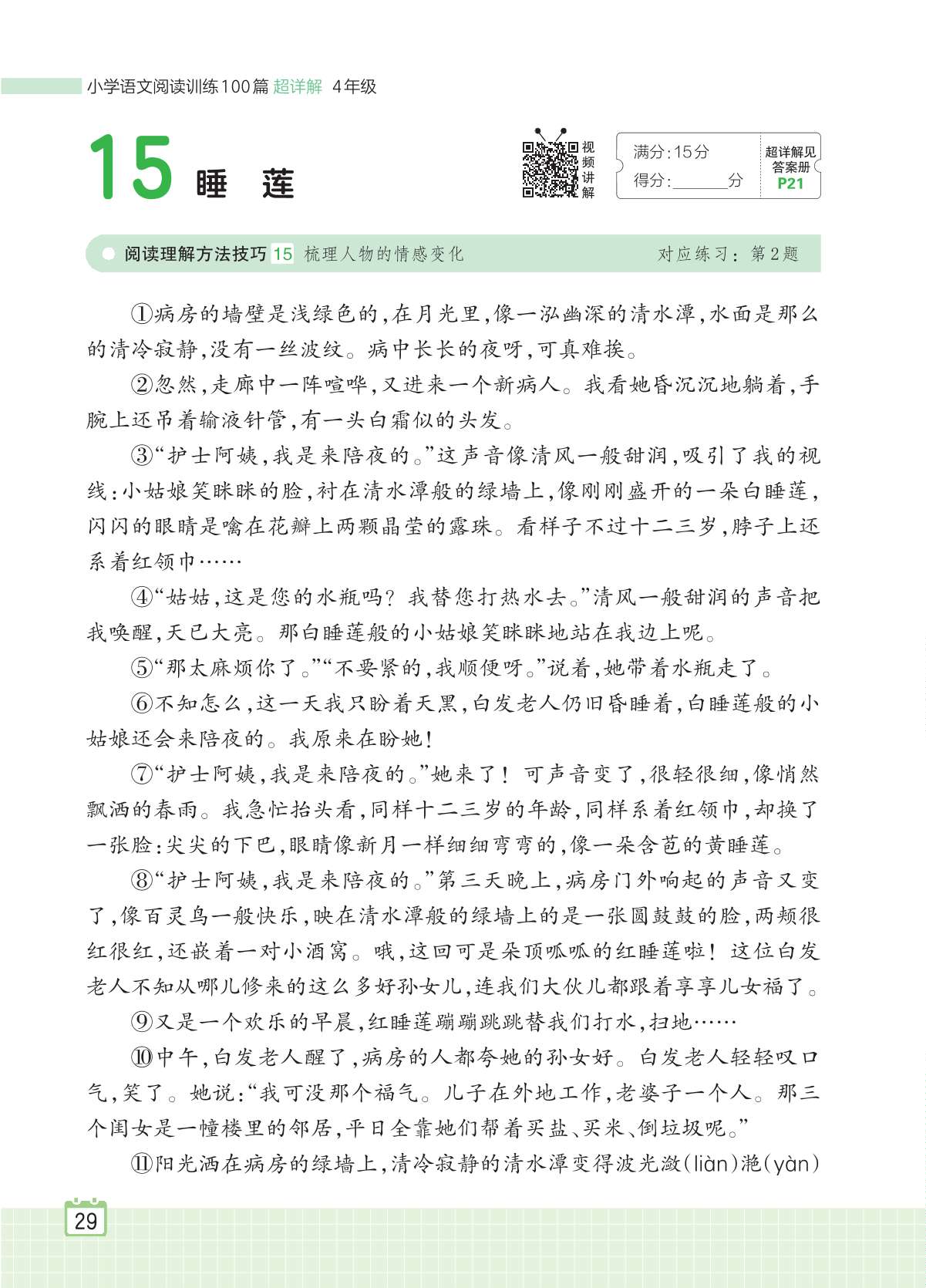 2024全一册四年级语文人教版 专题一 写人 15 睡莲