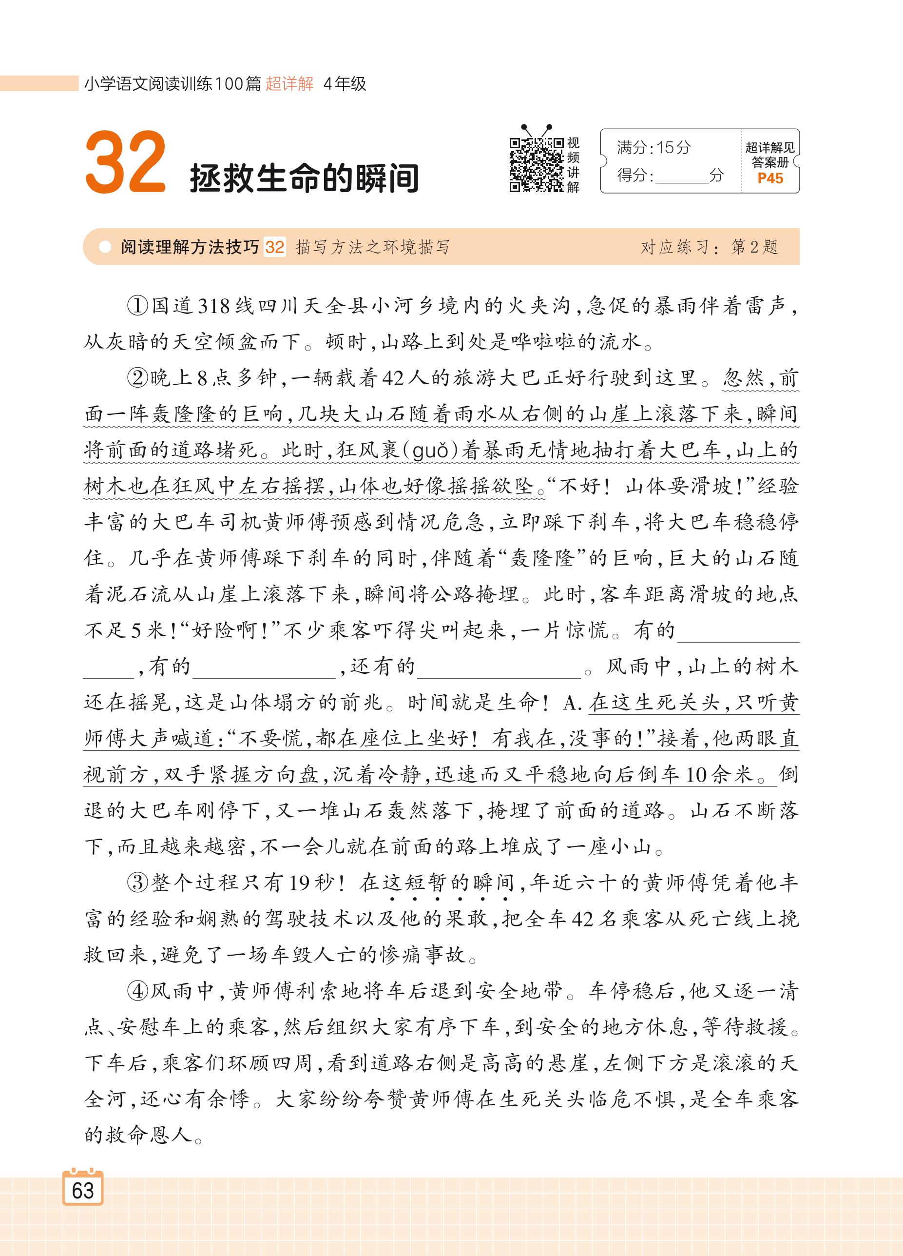 2024全一册四年级语文人教版 专题二 记事 32 拯救生命的瞬间