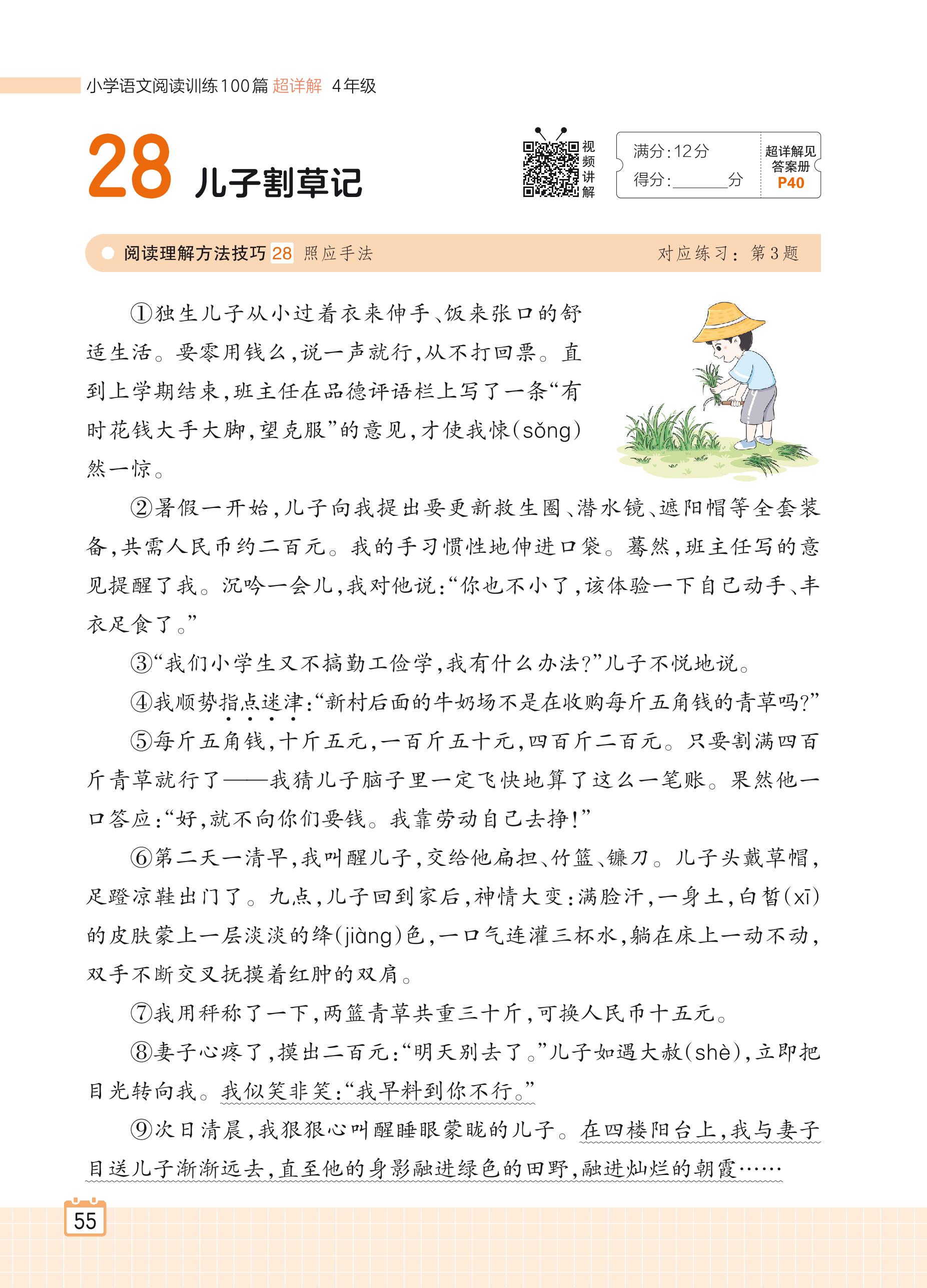 2024全一册四年级语文人教版 专题二 记事 28 儿子割草记