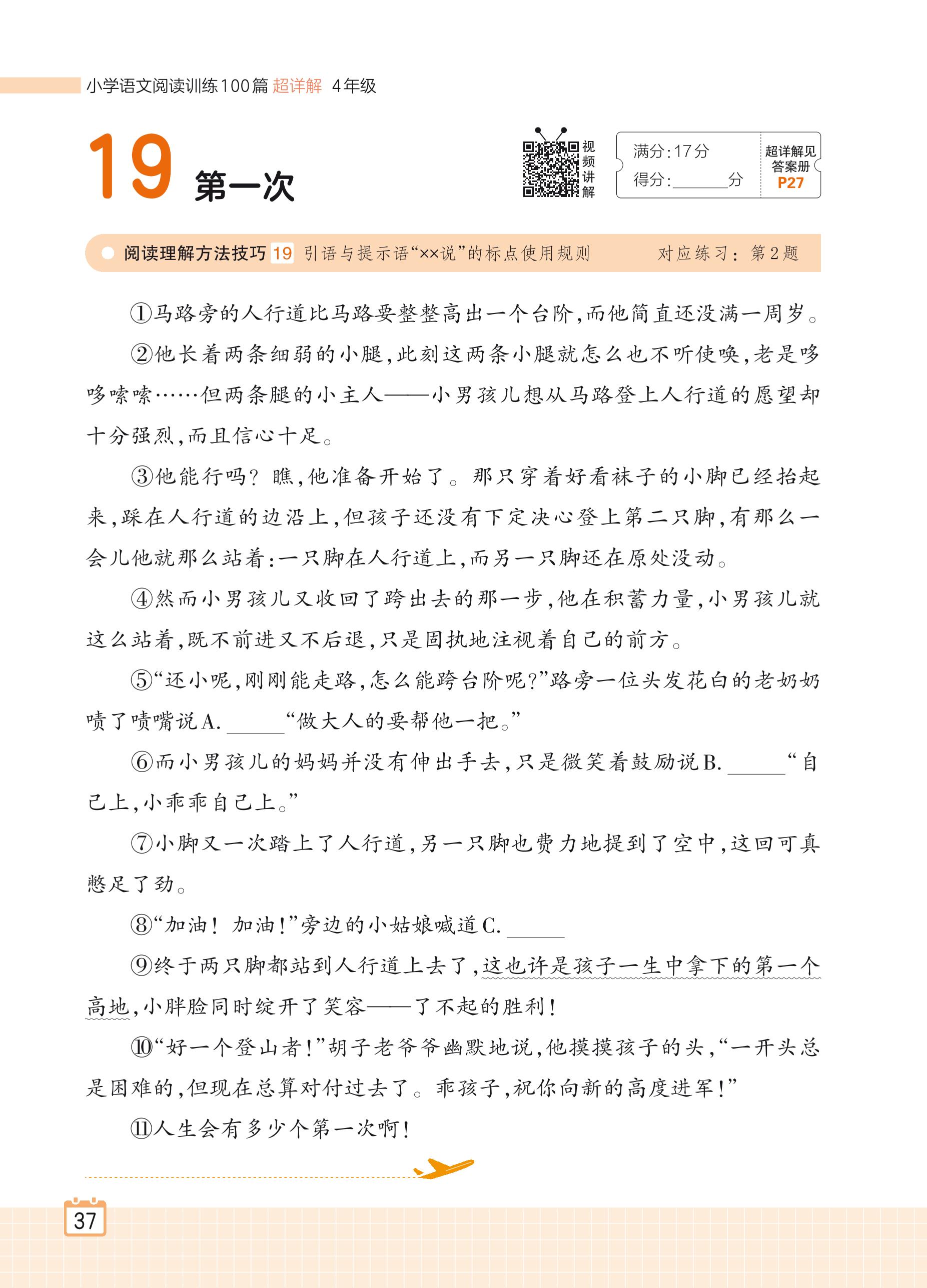 2024全一册四年级语文人教版 专题二 记事 19 第一次
