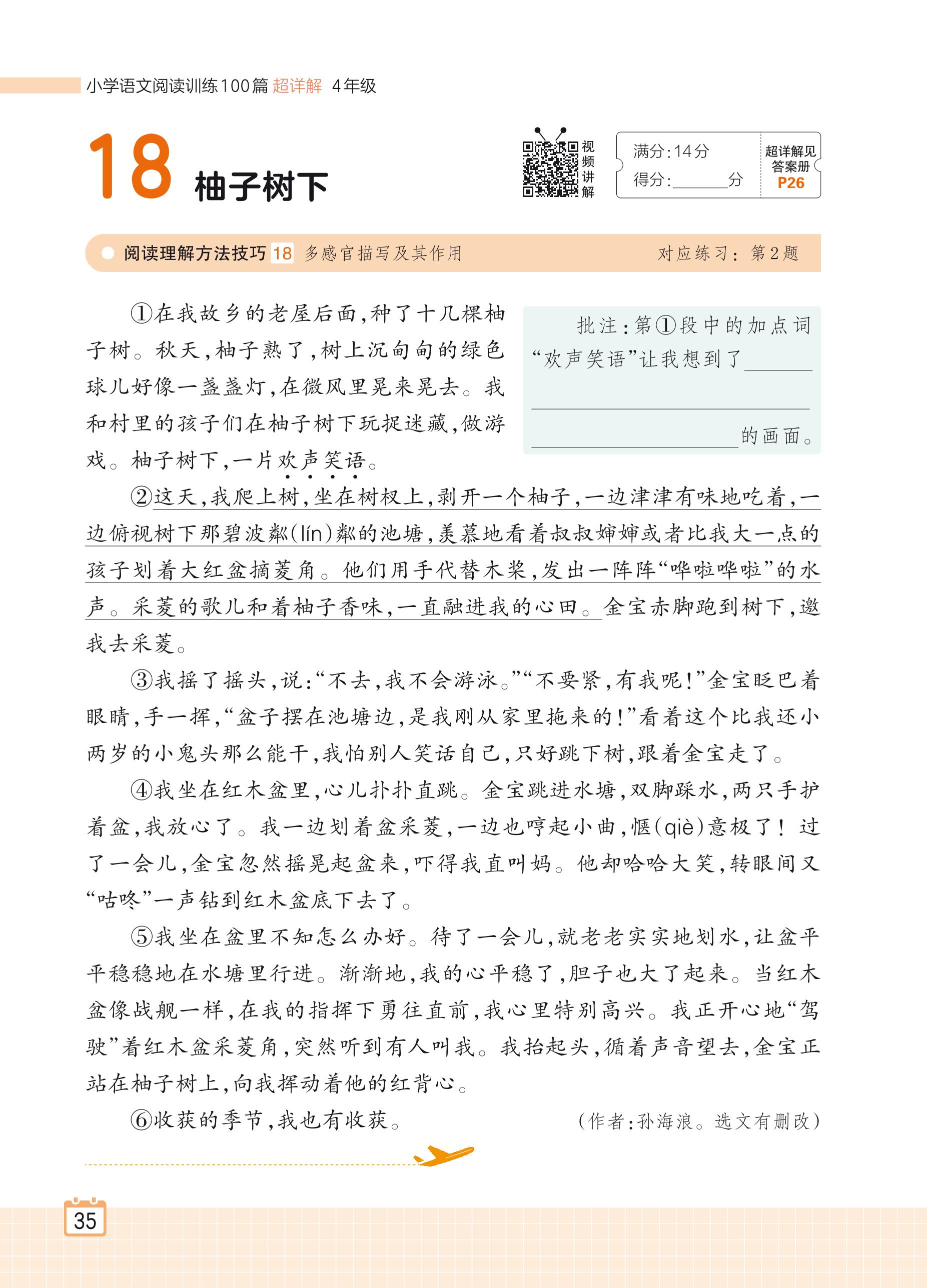 2024全一册四年级语文人教版 专题二 记事 18 柚子树下