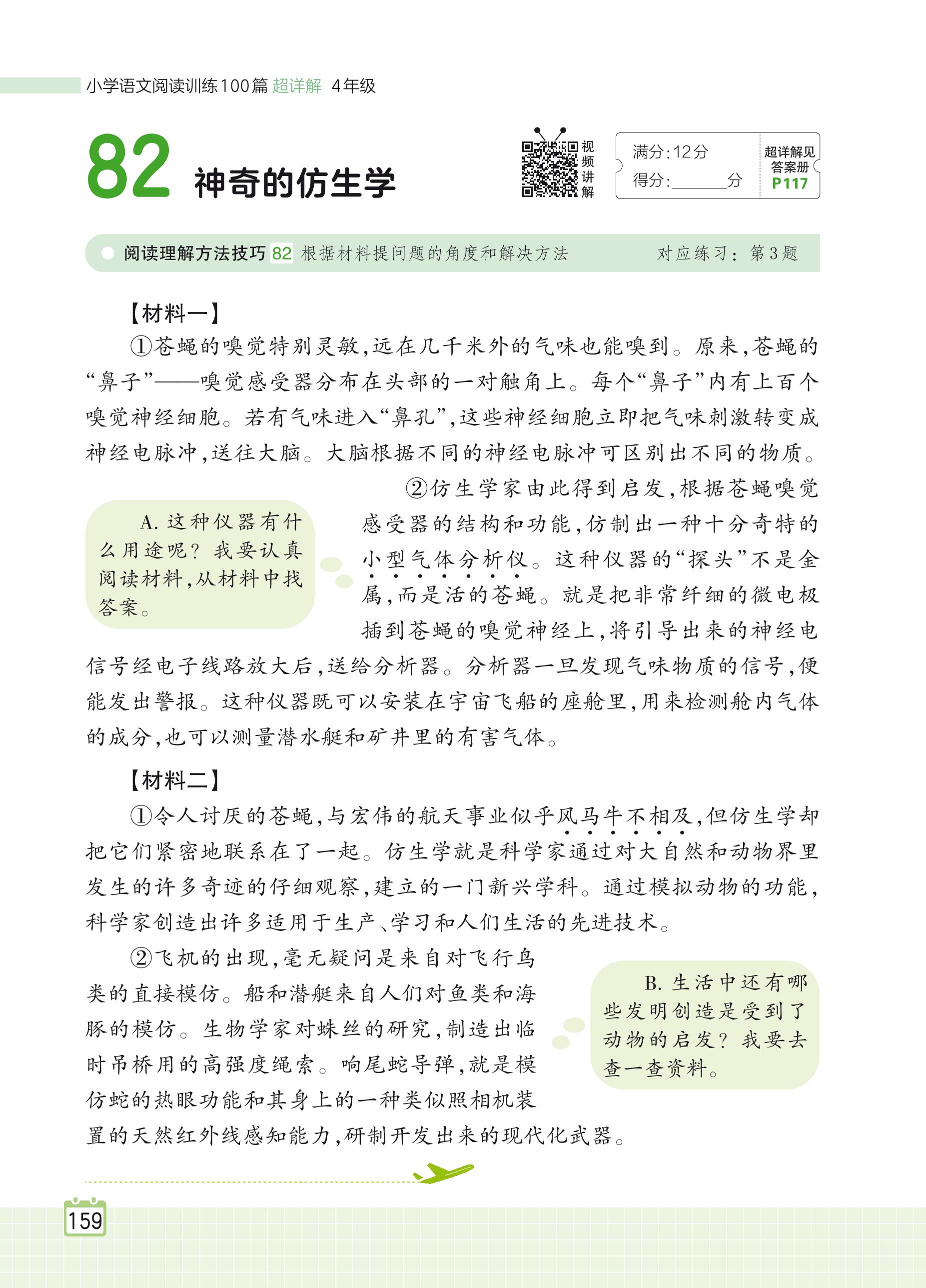 2024全一册四年级语文人教版 专题六 非连续性文本 82 神奇的仿生学