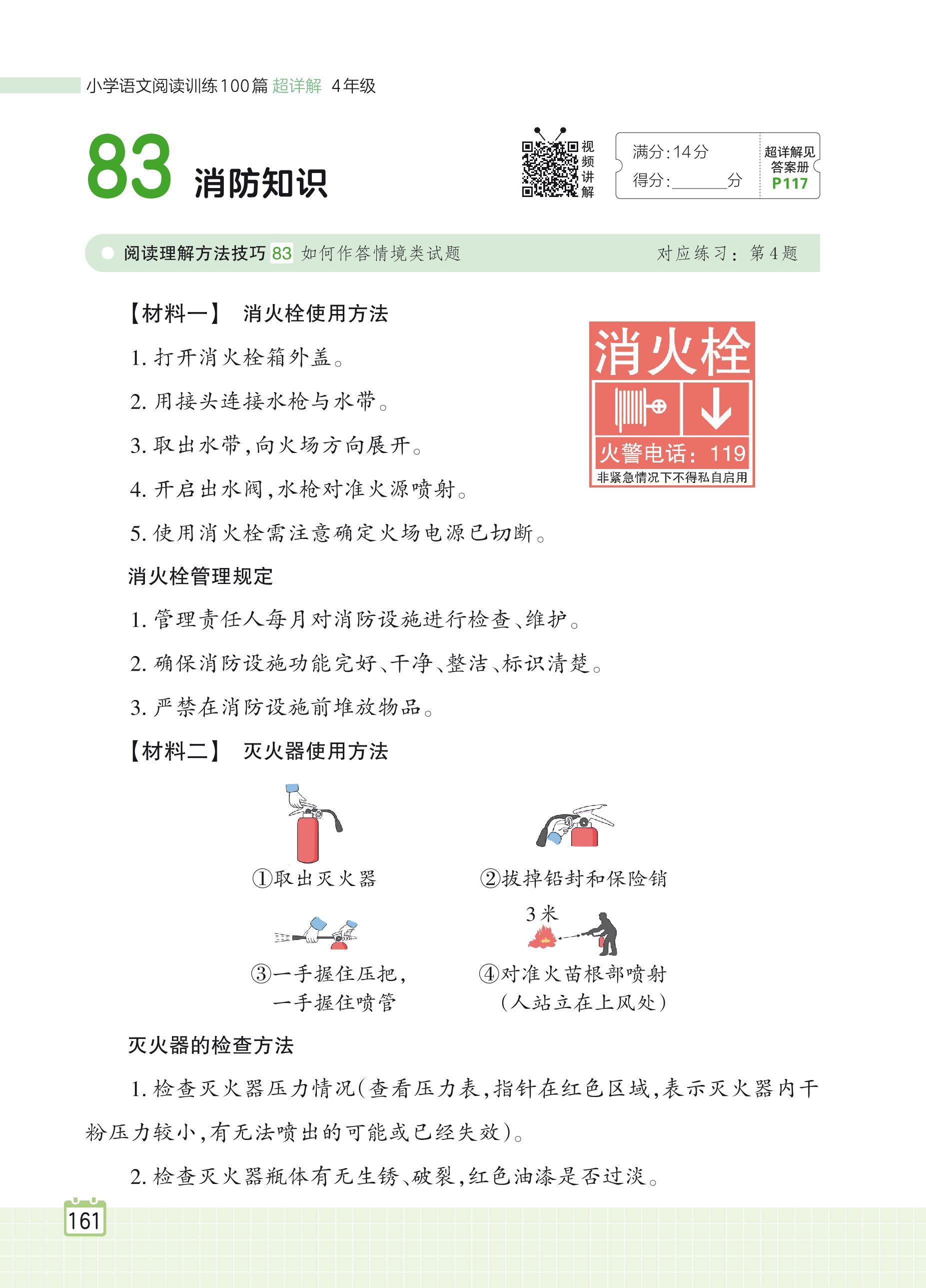 2024全一册四年级语文人教版 专题六 非连续性文本 83 消防知识