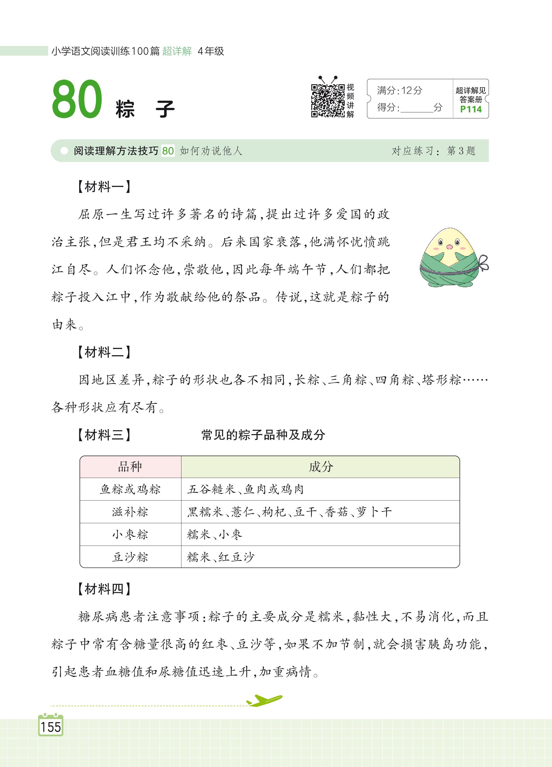 2024全一册四年级语文人教版 专题六 非连续性文本 80 粽子