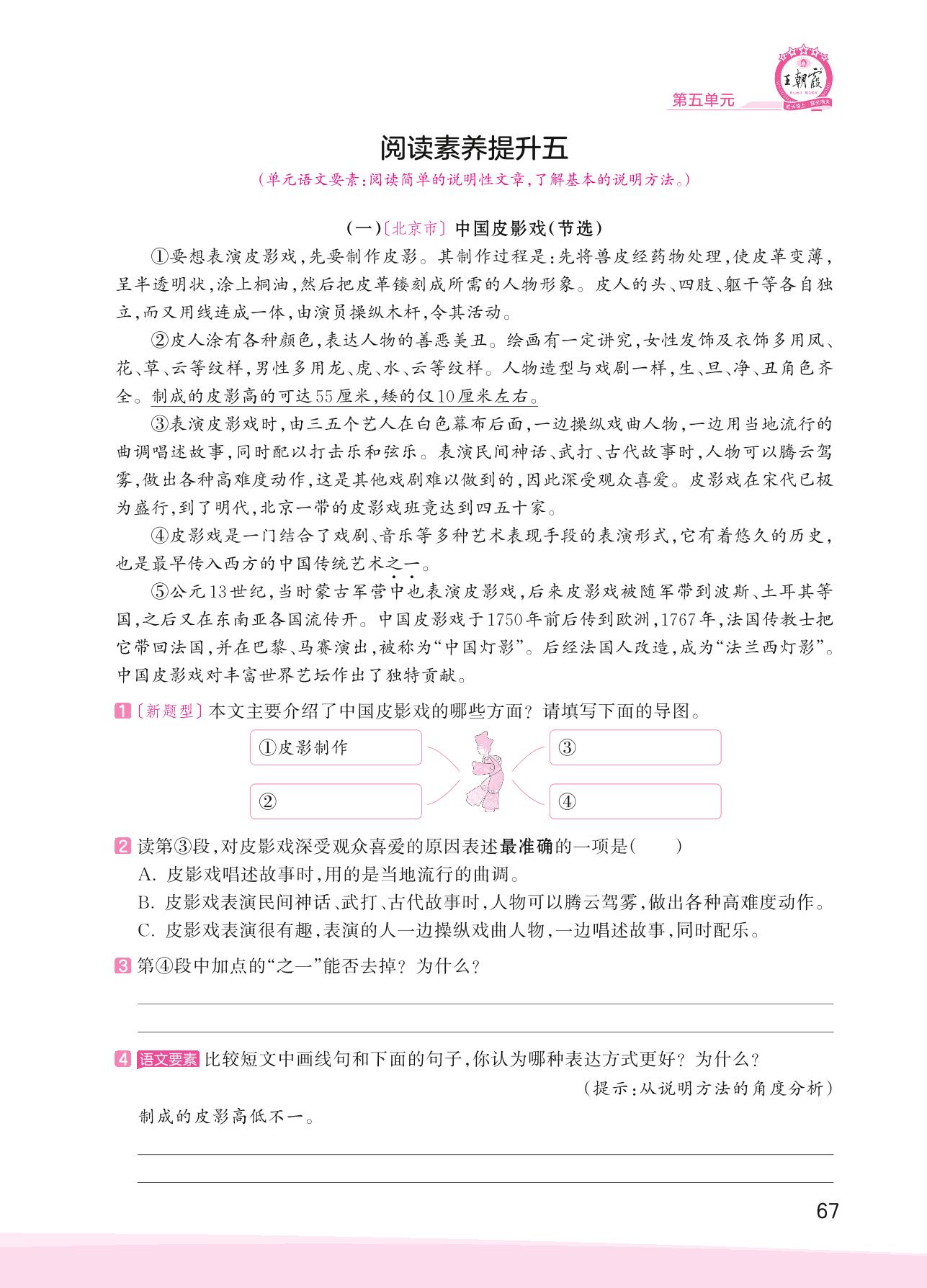 2023上册五年级语文人教版 第五单元 说明性文章——阅读素养提升五