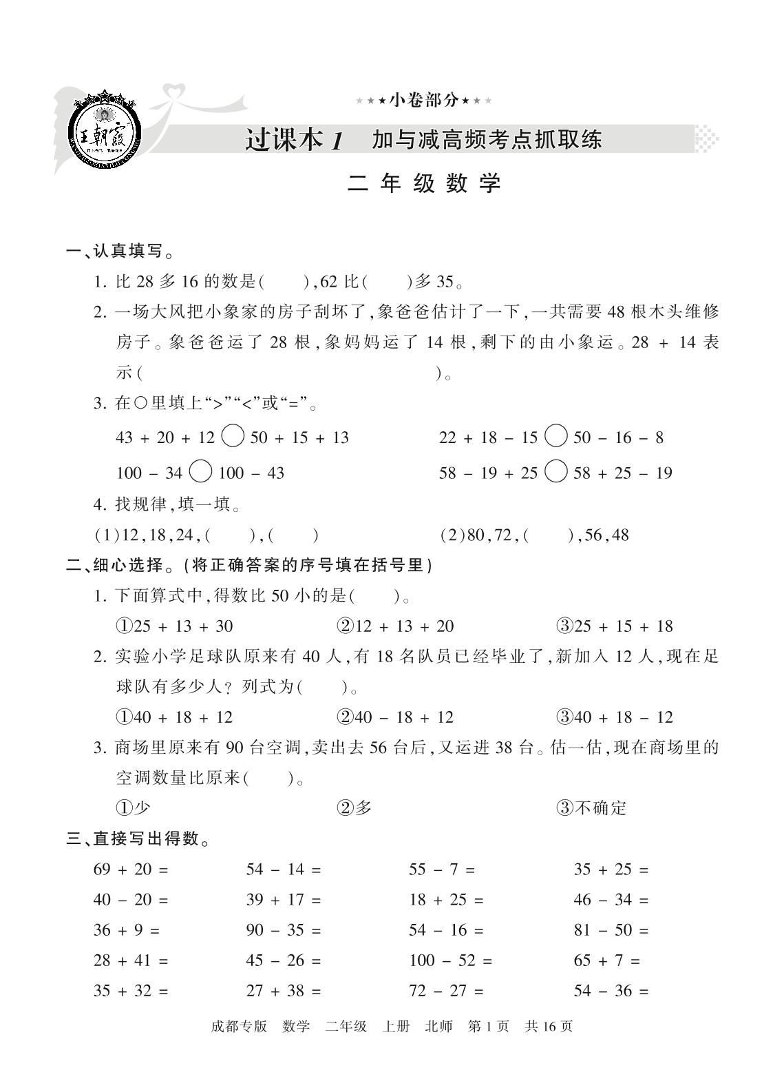 王朝霞期末小卷二年级上册数学(北师版)_R21080385452【0】